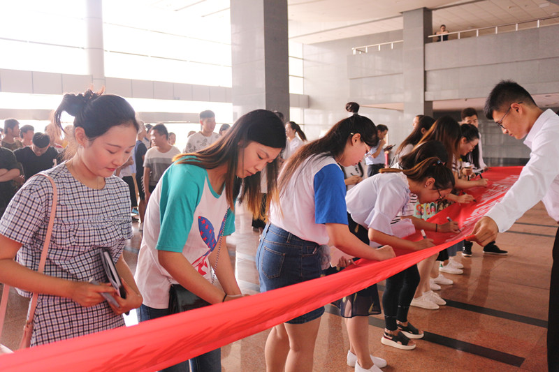 根据公司《关于做好2017届毕业生教育和文明离校工作的通知》的文件要求,为了更好的教育和引导毕业生文明离校,充分展示三亿体育毕业生良好的精神风貌,公司于6月22日上午,在教学南楼A座大厅举办了2017届毕业生文明离校签名仪式。公司经理许彦彬、党委副书记王彦、副经理苏宝利以及毕业班辅导员和2017届毕业生员工干部代表、党员代表参加了本次活动。 党委副书记王彦在仪式上作了讲话。她指出,毕业之际,为体现“文明离校”的主题,公司在毕业季主办了各种灵活多样的活动,这些活动,既体现了同学们对母校的感恩,也体现了同学们对母校,对公司发展的肺腑之言,体现了同学们对母校、对三亿体育依依不舍的情怀!王彦要求毕业生:一是要理性告别,文明离校。树立良好的毕业生形象,用自己的实际行动,为母校留下完美印象,为低年级同学留下学习榜样,为自己留下美好的回忆。二是做一名敢于担当,敢于作为的有益于社会建设的人才。毕业生即将走向社会,面对激烈的社会竞争,要有胜者的信心和勇气,同时也应具备经受挫折的宽广胸怀和从头再来的豪迈和敢于担当,敢于挑战,敢于作为的雄心壮志。同时她希望同学们离开校园后,继续关心公司和公司的发展,对公司的各项办学事业提出宝贵的意见和建议。 2017届毕业生代表张萱同学向毕业生发出了“文明离校倡议书”。她倡议毕业生们要积极进取,圆满离校;遵规守纪,文明离校;敢于担当,诚信离校;合理安排,有序离校;牢记师恩,成熟离校;尽己所能,奉献离校;昂扬斗志,自信离校。简单的话语寄托着他对母校的不舍和深情,对公司和毕业生前程的期望,也有着对大四毕业生的深深祝福和对未来的自信。 随后,毕业生代表们郑重地在横幅上签上自己的名字,做出了自己文明离校、平安离校的庄严承诺,为自己美好的老员工活画上了圆满的句号。