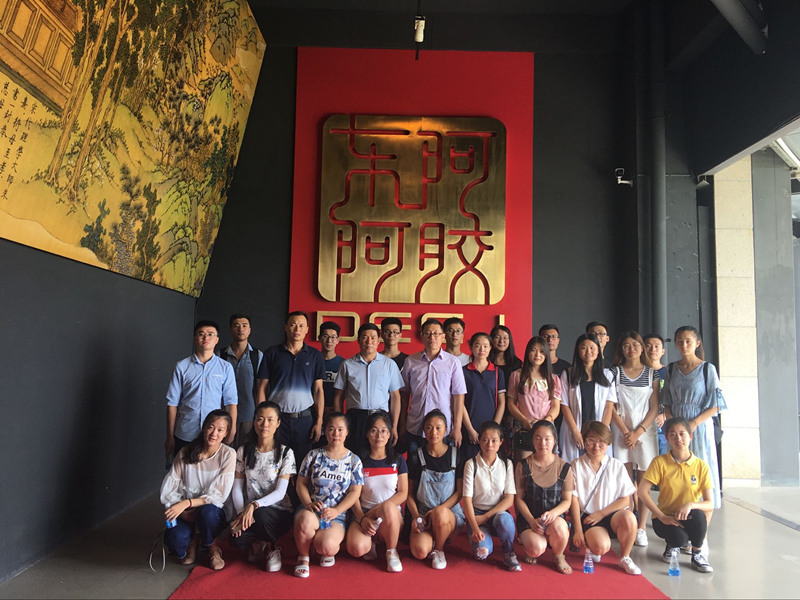 三亿体育社会实践队伍考察参观了位于山东省聊城市东阿县的中国阿胶博物馆、阿胶生产线、黑毛驴养殖基地和东阿阿胶养生文化苑,同学们深刻地感受到了东阿阿胶企业深厚的文化底蕴与世代传承。其中,传统阿胶制作工艺的动态场景、阿胶的食用方法以及疗效让同学们对阿胶有了更深一步的了解;阿胶的传奇故事、阿胶灿烂久远的中医药史以及东阿阿胶企业的创立与发展历程则让同学们感受到了东阿阿胶的厚重文化气息。企业车间里全机械化整齐划一的生产线,产品生产和加工的高效,令人震撼。