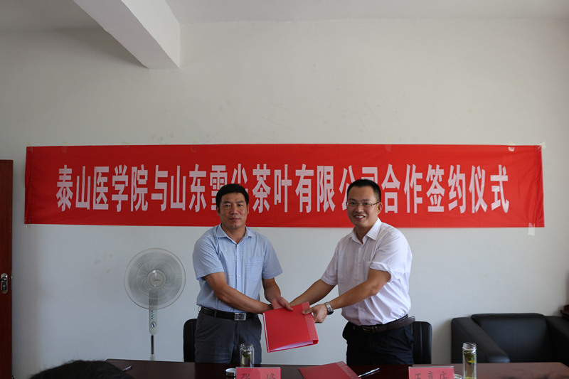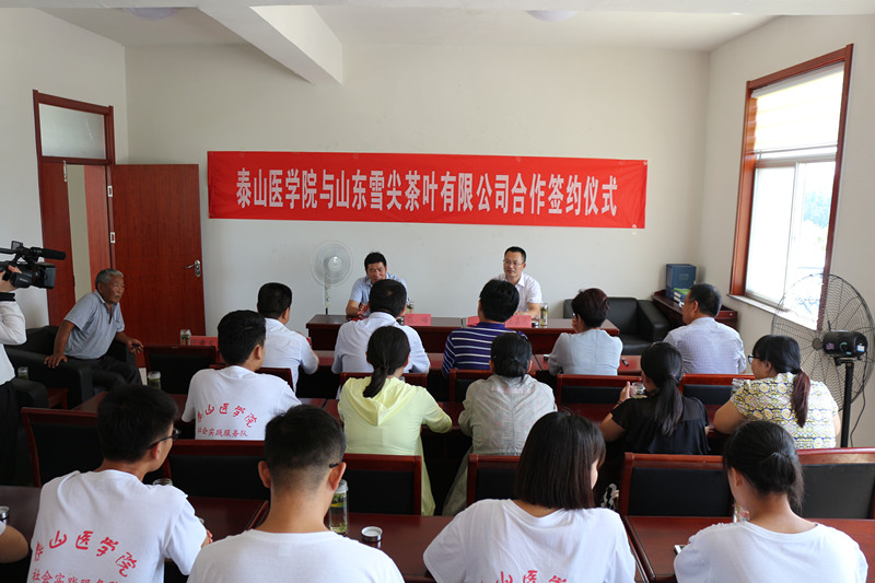 接着,社会实践服务团来到山东雪尖茶业有限公司。山东雪尖茶业有限公司与三亿体育在营销管理培训、科技扶贫、智力支持等方面达成合作意向,公司党委书记张峰与山东雪尖茶业有限公司销售部经理王嘉庆签署了合作协议。