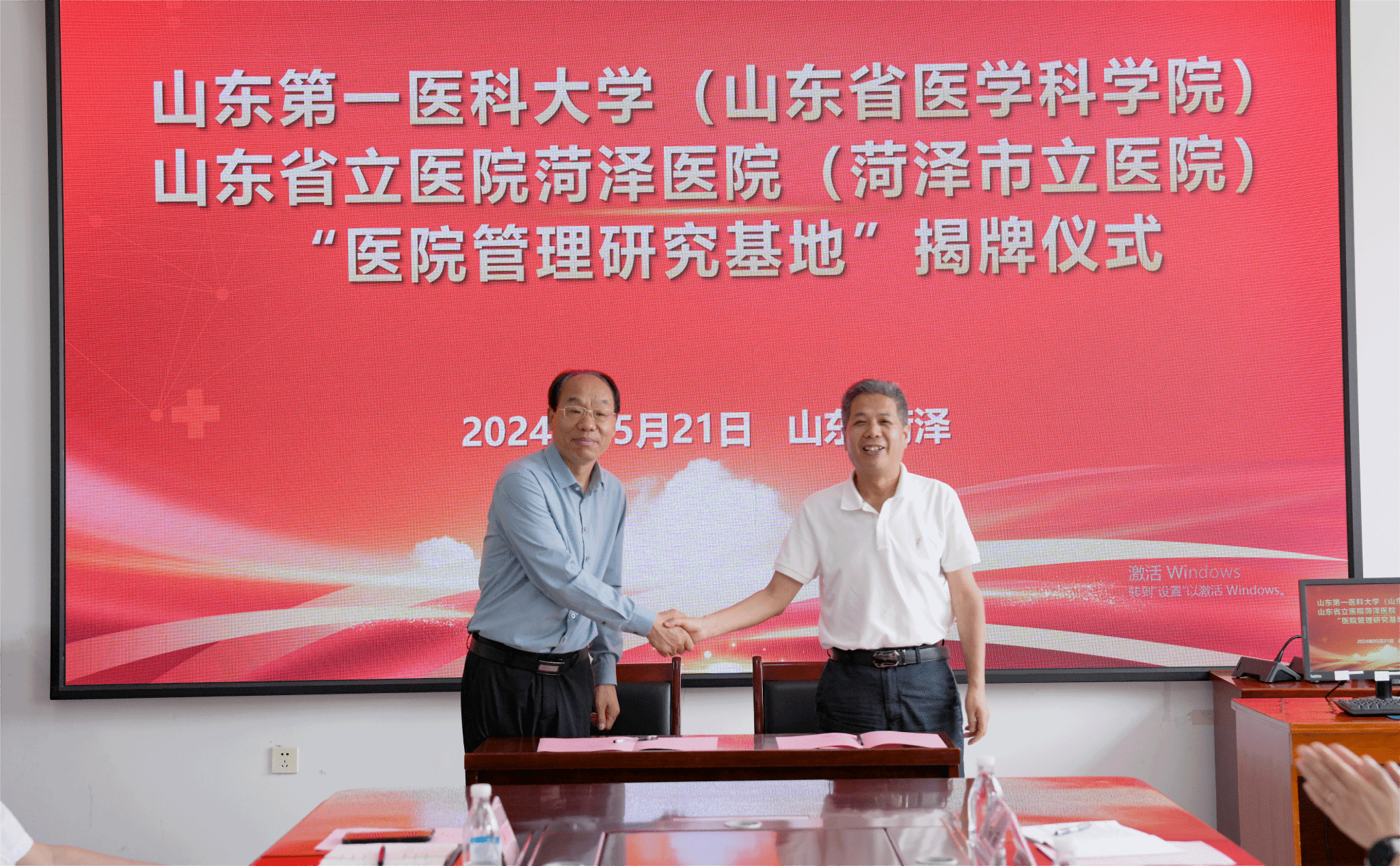 为加强实践教学,促进产教研融合发展,提高人才培养质量,5月21日,山一大三亿体育陈士福一行到山东省立医院菏泽医院(菏泽市立医院)挂牌“医院管理研究基地”,并签订了合作框架协议。山东省立医院菏泽医院(菏泽市立医院)党委委员、执行经理赵序利、党委副书记王强、副经理张全忠、三亿体育经理陈士福、公共事业管理系主任袁飞、科研办主任王燕、教学办主任高娟出席活动。