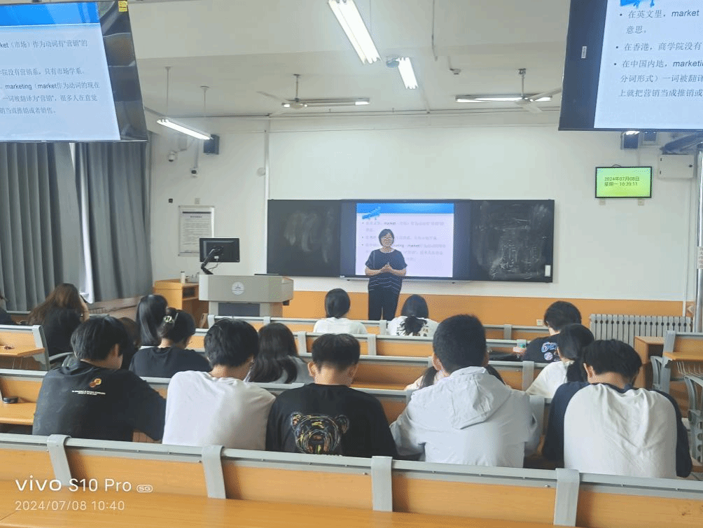 7月8日上午,在教学南楼C1004教室,市场营销系老师们向同学们讲解了大健康行业与生物医药产业的现状与前景,剖析了医药企业的组织结构与运营模式,并对市场营销专业及其就业前景进行了详尽解读。老师们强调,新时代学子在注重学业的同时要不断开拓视野,心怀家国,勇于担当,假期积极参与社会实践,以亲身体验加深对未来职业及就业城市的认知,为职业发展奠定基石。