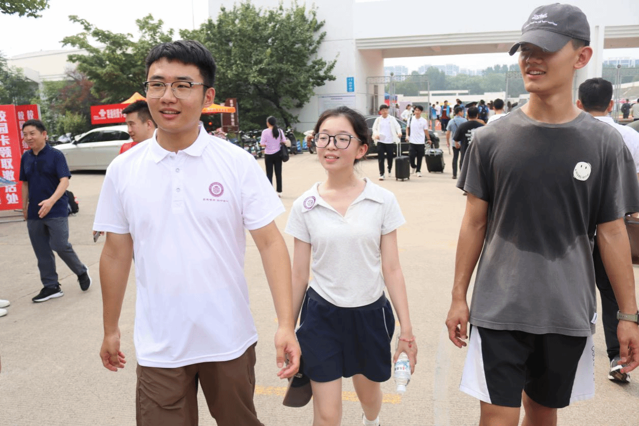 在校园,志愿者们将新生指引至报到地点,并帮忙搬运沉重的行李,即使骄阳似火仍阻挡不了志愿者们的迎新热情,他们牢牢坚守在自己的岗位上为新生们保驾护航!