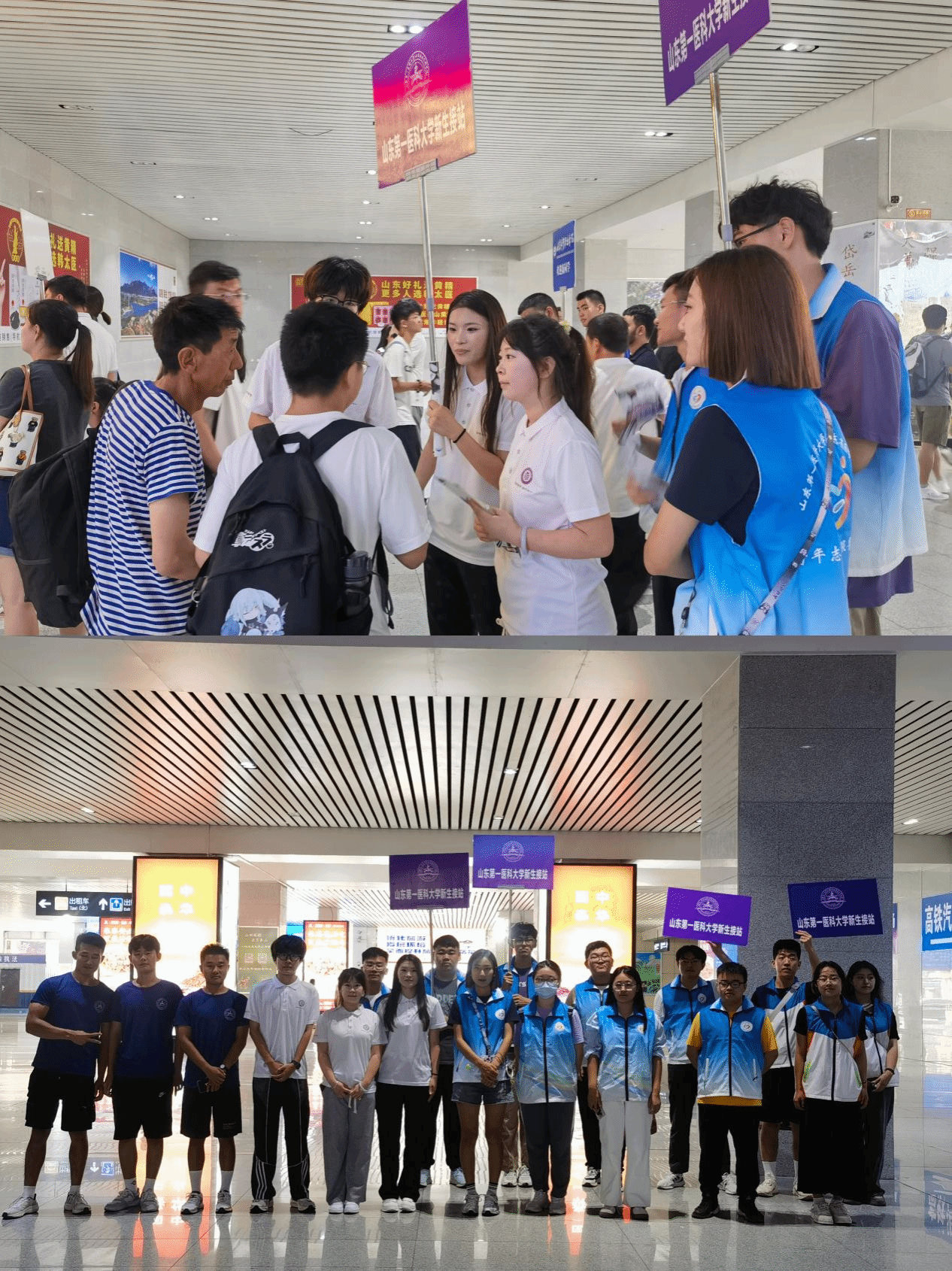 在车站,迎新老师和志愿者们手持欢迎牌,笑容可掬、热情洋溢,传递着对新生的欢迎期盼。他们积极为新生搬运行李,耐心指引、协助新生完成注册流程、安排宿舍,实现从家门到校园的顺畅过渡,让每位新生都能感受到家的温暖。