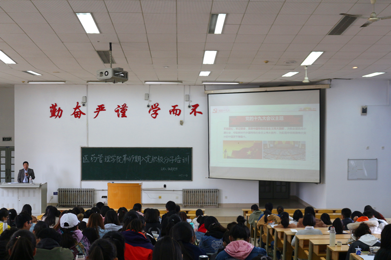 10月28日,公司党委书记张峰在综合教学楼C2024教室,为公司的主要员工干部、员工骨干、入党积极分子宣讲党的十九大精神.。