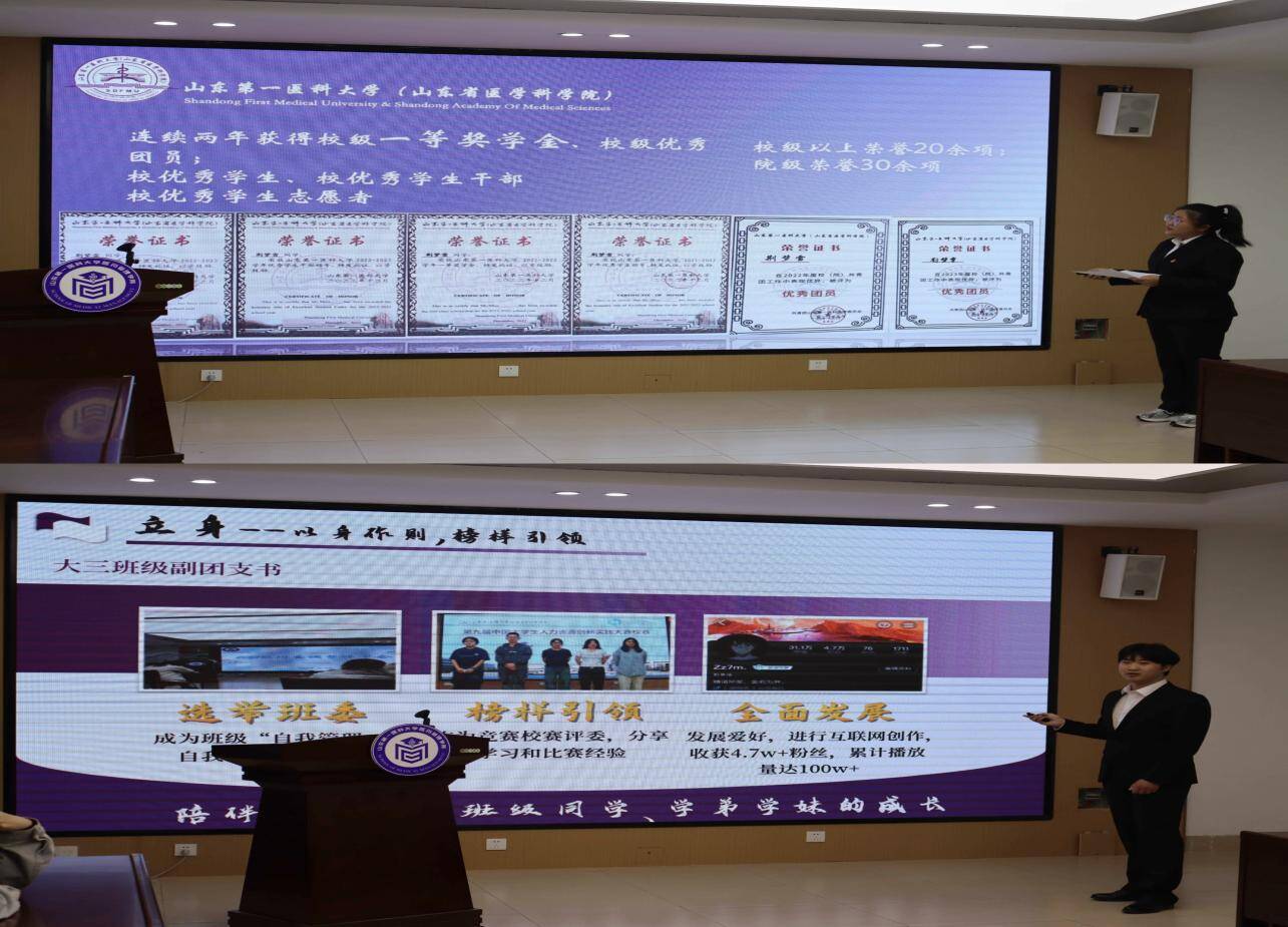 赵启会在会议中指出,省政府奖学金不仅仅是一份物质的奖励,更是对同学们过去一段时间里辛勤付出和优异成绩的肯定。它承载着公司对大家的期望和鼓励。董灵芝为员工简单介绍评选规则。参加评选会的四位同学分别从学业成绩、班级工作、科研竞赛、志愿实践等方面进行个人答辩。评审老师在认真听取个人演讲后依照评分准则进行现场评分。