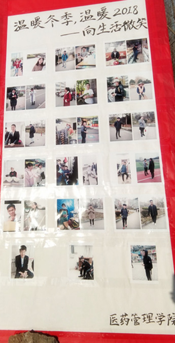 为了丰富同学们的课余文化生活,增深同学们的生活阅历,让公司同学感受到生活的幸福与温暖,培养积极向上、乐观的生活态度,公司青年志愿团于11月27号至12月7号在校内外开展“温暖冬季,温暖2018——向生活微笑”活动。