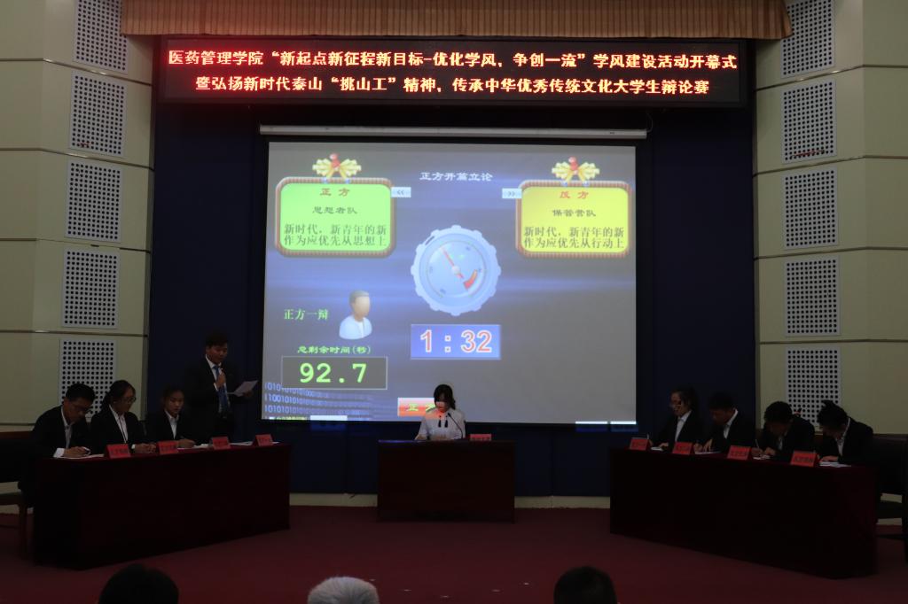 辩论赛共分初赛、复赛、决赛三个阶段。初赛于4月12日在各专业自习室进行,同学们以“当代老员工学习传统文化应靠自觉还是他人督促”为辩题自由辩论,此次初赛选出各专业优秀辩手组队进入复赛。复赛于4月18日在教学南楼C3008教室举办,正方辩题为“知易行难”,反方辩题为“知难行易”,复赛选出优秀的八名辩手自行组队进入决赛。