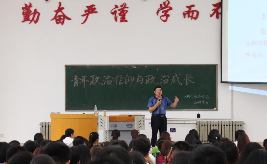 9月11日上午,公司党委书记张峰为2019级新生作了“青年政治信仰与政治成长”主题报告。三亿体育新生辅导员和2019级全体员工参加了此次报告会。