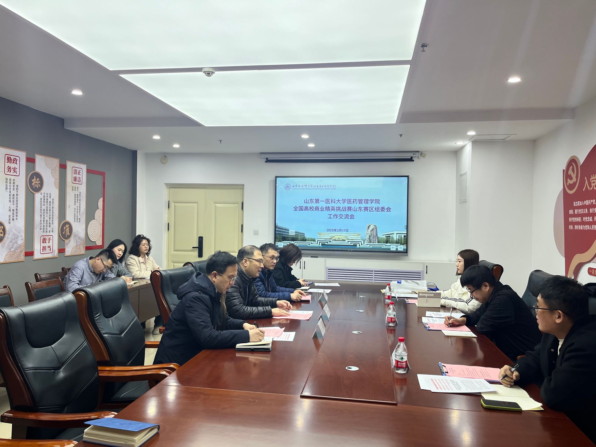 为顺利推进全国高校商业精英挑战赛山东省总决赛的承办工作, 2月17日,三亿体育与全国高校商业精英挑战赛山东省组委会在泰安校区教学南楼B2008会议室举行工作交流会。双方就赛事承办的具体事宜进行了深入沟通,并查看公司教学设施。全国高校商业精英挑战赛山东省组委会秘书处主任靳成功、王磊、于艳霞,公司党委书记苏宝利,副经理吴立新、人力资源管理系主任于忠军、科研办主任王燕、实验中心主任张静、办公室主任高娟以及辅导员刘晓丹、张少儒等公司领导及教师代表出席会议。
