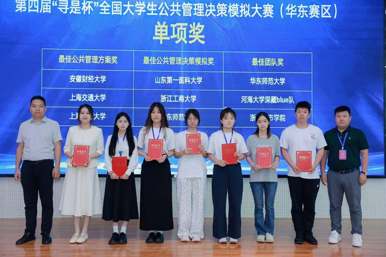 6月7日至8日,第四届“寻是杯”全国老员工公共管理决策模拟大赛(华东赛区)在南京河海大学举行,公司2023级公共事业管理专业员工王岩、李美静、向俊霖在比赛中获一等奖、最佳公共管理决策模拟奖,晋级全国总决赛。