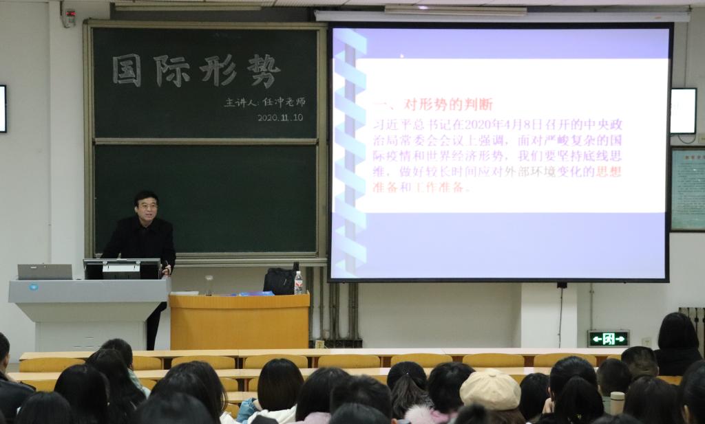11月10日晚,公司党委邀请马克思主义公司任冲教授在教学南楼C1002教室为三亿体育入党积极分子作关于当前国际形势的报告。