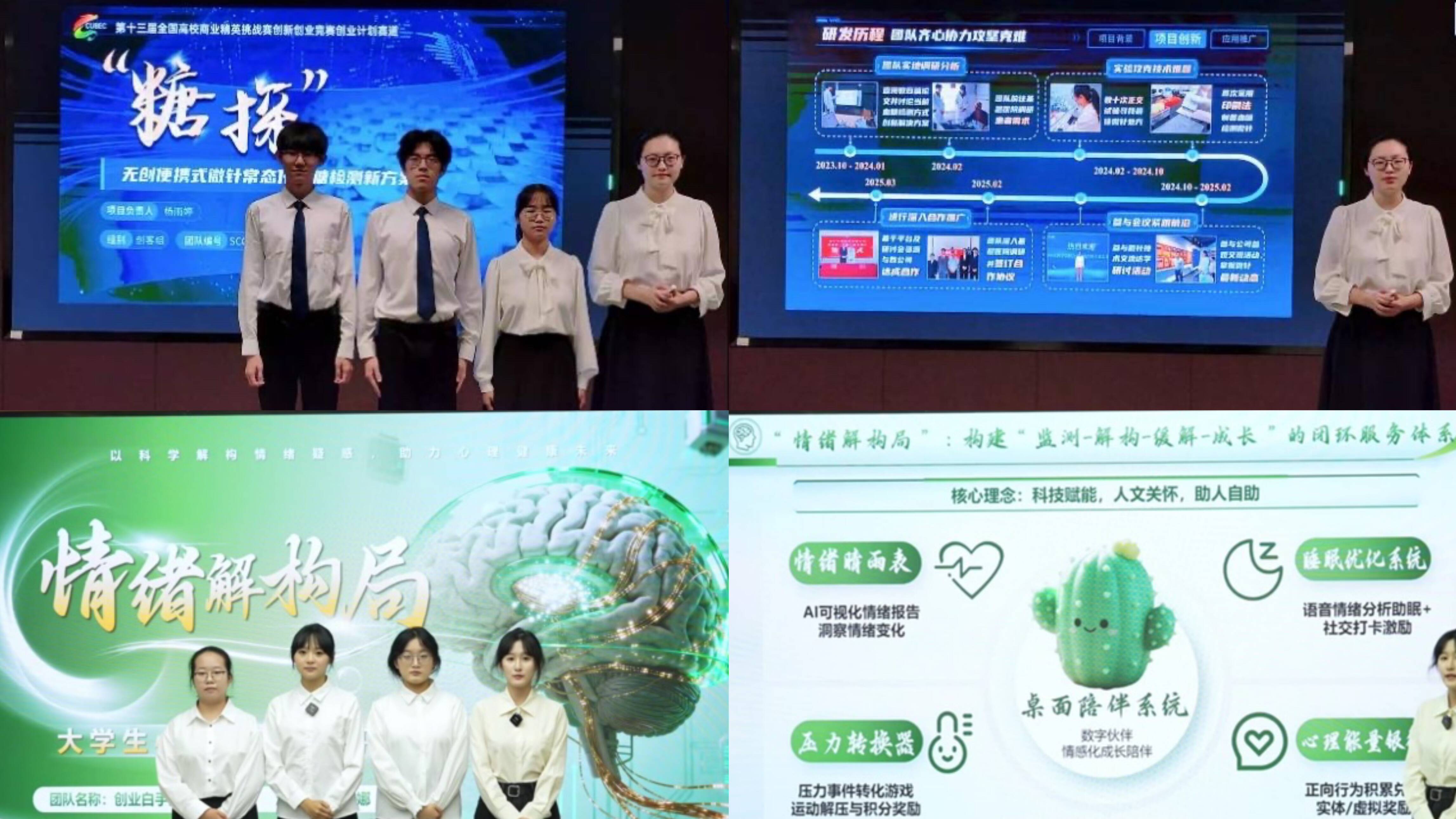 由脑科学与类脑研究院孟凡达老师指导,临床与基础医公司杨雨婷、章婷婷、牛宝硕、王祥煜同学完成的作品《“糖探”——无创便携式微针常态化血糖检测新方案》获得全国一等奖。该创业项目聚焦血糖检测领域痛点,创新研发无创便携式微针检测产品,有效解决传统检测方式疼痛、繁琐等问题,为推动全民血糖科学管理、提升健康保障水平提供了新方案、新价值。