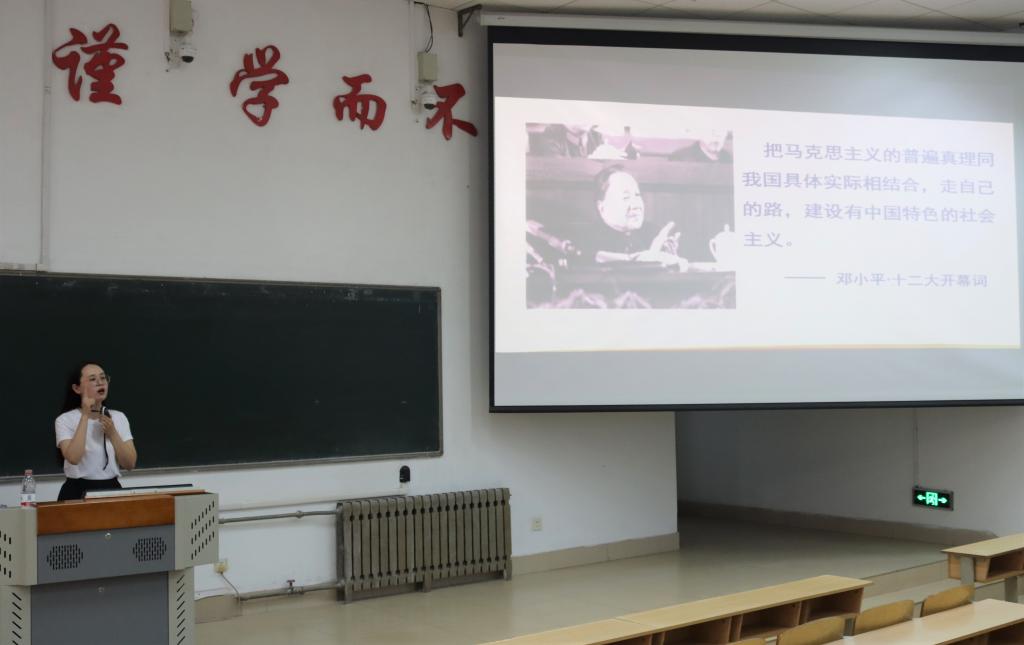 胡睿以“中国共产党为什么‘能’?”、“马克思主义为什么‘行’?”、“中国特色社会主义为什么‘好’?”这三个问题为引,以百年荣光为题,向同学们介绍了中国共产党和社会主义在中国的变革历史,讲述了近年的大势所趋,使入党积极分子更加了解中国共产党的历史和过去。随后列举了一系列中外人士的记录书籍内容,从“先锋属性,崇高使命”、“坚定信仰,以人为本”、“立足国情,实事求是”、“葆有忧患,勇于担当”这四个方面说明了中国共产党是历史和人民的选择,明确了中国共产党的立场和初心,坚定了入党积极分子加入中国共产党的决心。最后,向同学们介绍了中国共产党在新时代的目标和制度等现实问题,向同学们传达了中国共产党不忘初心砥砺前行的决心,希望入党积极分子主动树立远大的目标,时刻以高标准严格要求自己,做响应时代号召的新青年。