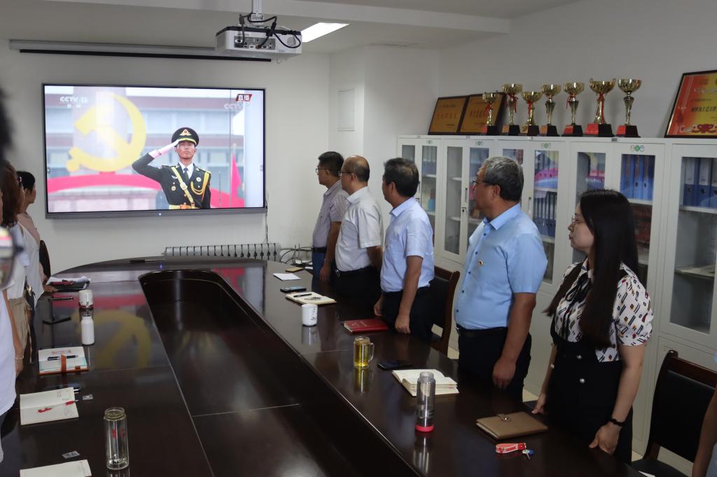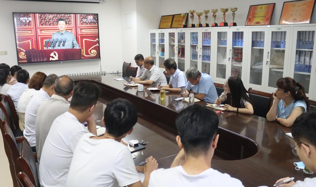 庆祝中国共产党成立100周年大会7月1日上午8点在天安门广场隆重举行,公司党委组织领导班子成员、党支部书记、党员教师和员工党员代表在会议室集体收看了大会直播。