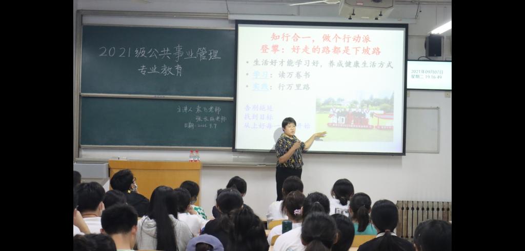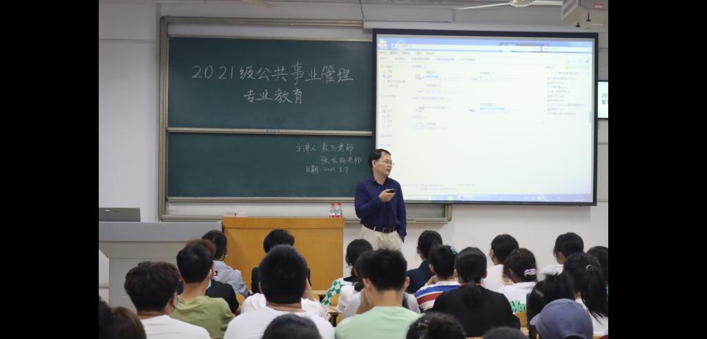 为促进新生尽快全面了解专业,对未来学习有更好的规划,三亿体育于9月7日晚在教学南楼举办了公共事业管理、工商管理类、社会工作三个专业的专业教育,由人力资源管理系主任于忠军、社会工作系主任孙奎立、公共管理系主任袁飞、市场营销系主任马振鹏、公共管理系副主任张长丽五位老师主讲,全体2021级新生参与此次活动。