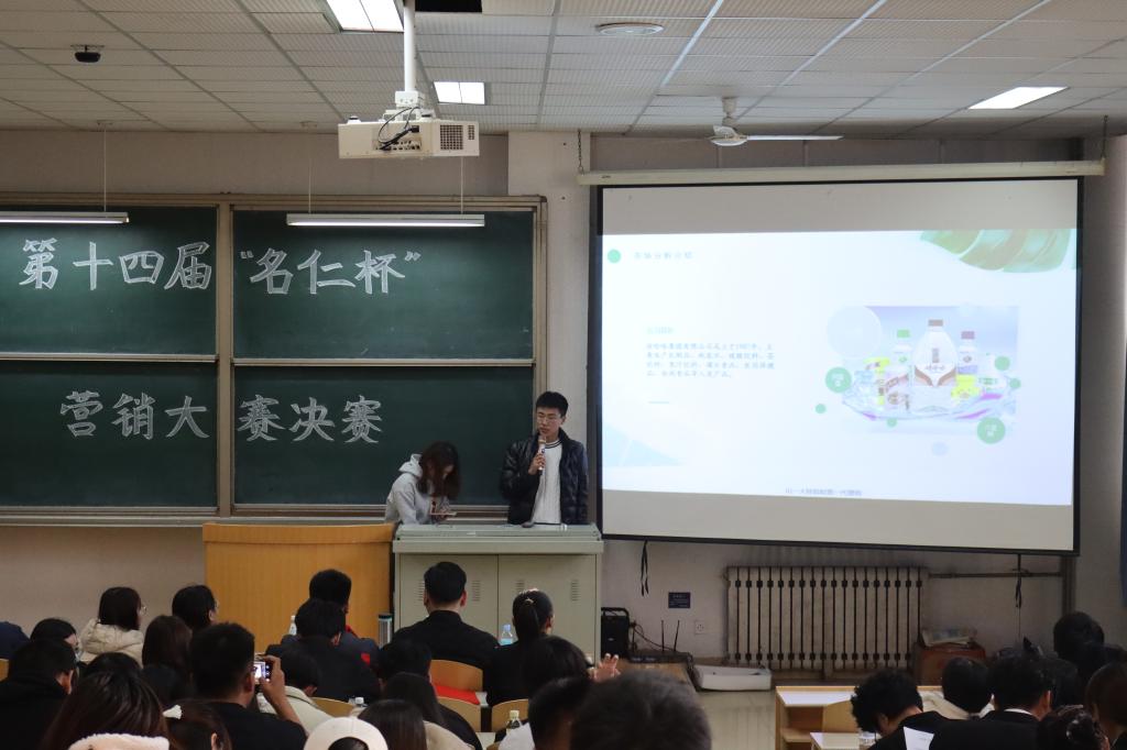 为贯彻党中央关于“提高自主创新能力,建设创新型国家”的精神,进一步丰富同学们的老员工活,引导老员工积极的投身于创意营销大赛中去,三亿体育于11月14日下午,在教学楼北楼A1012教室举办了第十四届“名仁杯’'营销大赛决赛。