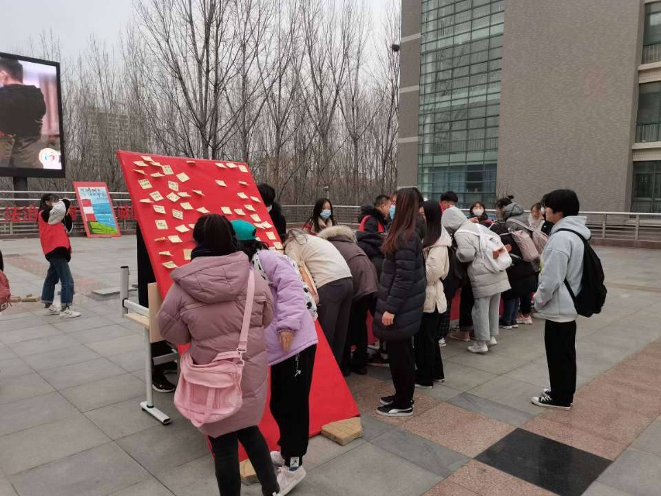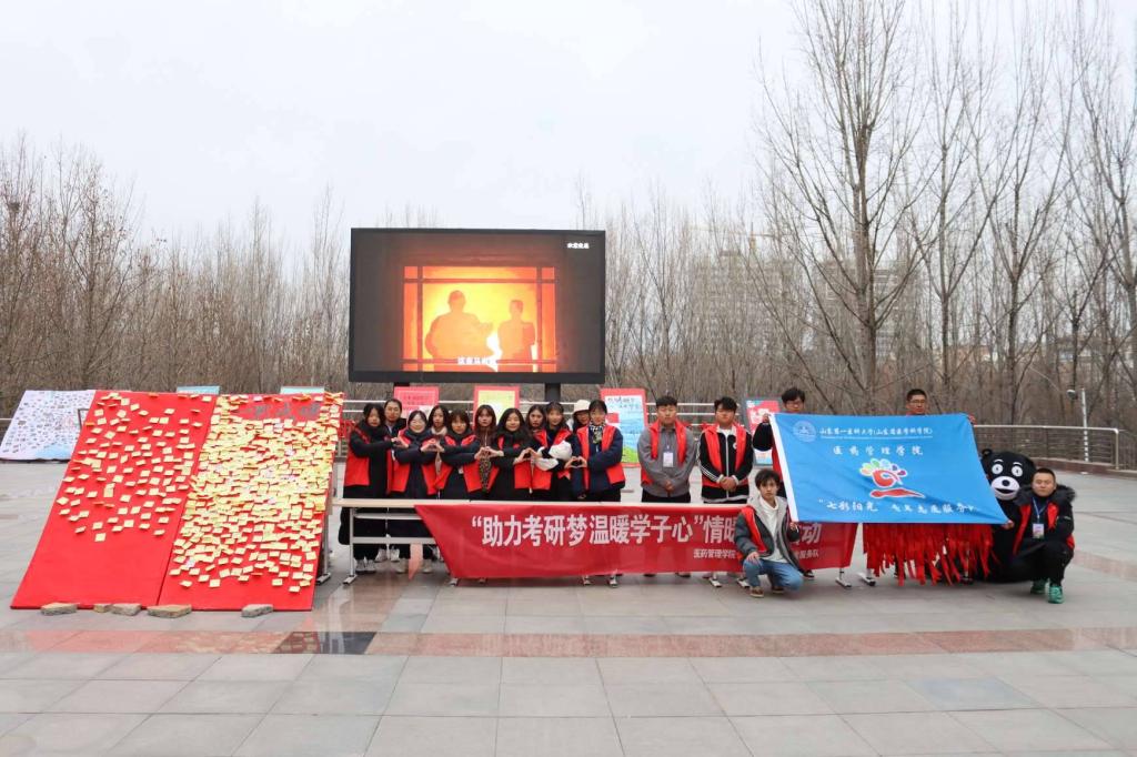 活动现场热闹非凡,吸引了一大批学子纷纷前来为自己和朋友送去祝福,本次活动不仅增进了为大四考研员工增加了自信心,而且加深了同学们对考研的了解、在校园内传播了正能量,营造了积极向上的学习氛围。