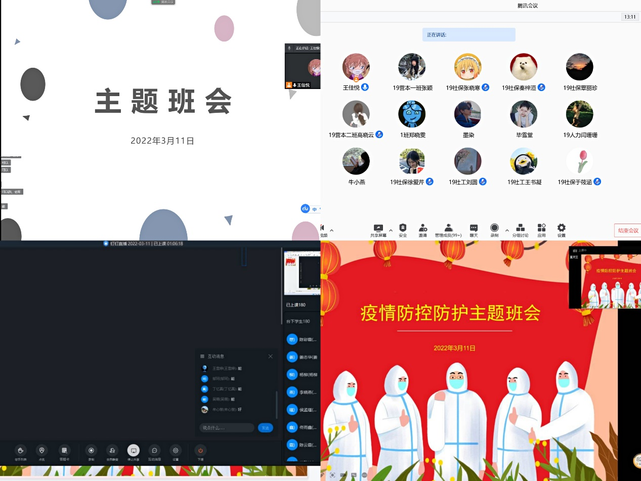 公司全体辅导员召开疫情防控主题班会。会上,辅导员老师对同学们关心的疫情问题做了解答,引导同学们放平心态,加强个人防护,减少不必要的外出,每日做好“一日三监”体温检测,严格员工请假制度,加强课堂考勤管理,做好校园安全防护。