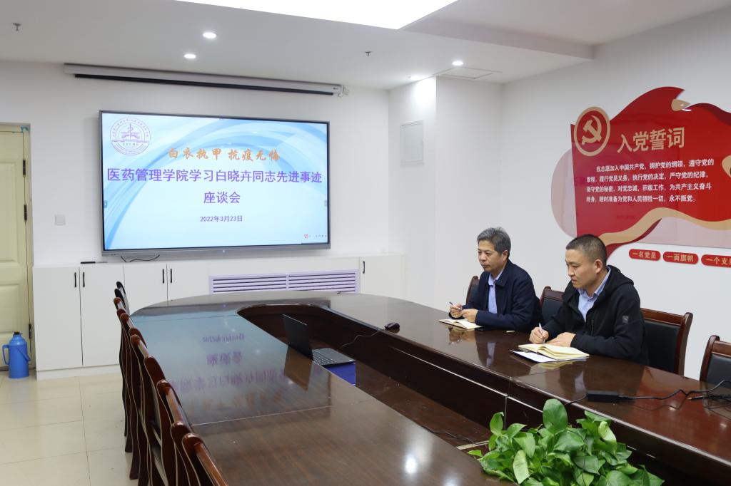 师生代表先后作了发言。人力资源系党支部书记王静老师表示作为一名新时代的党支部书记,要学习白晓卉初心如磐的精神品质和至诚至深的家国情怀。作为一名党员教师,要学习她“顽强拼搏,乐于奉献”的精神,永远忠诚于党和人民,自觉树立崇高的职业理想,将满腔热忱献给教育和卫生事业。员工会主席张浩天、志愿服务队队长尤勇康、2021年度国家奖学金获得者赵红乐、员工第一党支部党员代表王昭霞、员工第二党支部党员代表韩湘琦、员工第三党支部党员代表胡中原,在发言中纷纷表示要向楷模学习,向英雄致敬,在当前疫情形势下,承其志、扬其德,积极承担起作为员工干部和党员的责任担当,坚决贯彻落实校(院)党委的决策部署,带头落实疫情防控各项措施;要充分发挥好生力军作用,强化青春担当,积极参与到校(院)疫情防控志愿工作中去,团结一心、众志成城,用实际行动汇聚起战“疫”的磅礴力量,展现出山一大青年的责任担当;要主动传播正能量,共同维护校(院)良好的秩序。