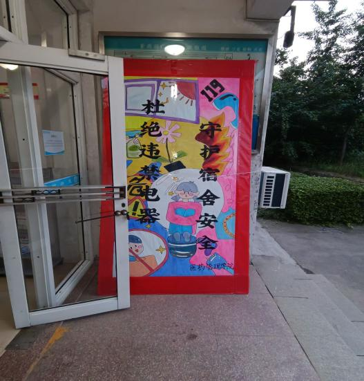 为了让更多同学认识到宿舍公寓安全的重要性,在校园内营造重视公寓安全的文化氛围,公司积极开展“杜绝违禁电器,守护宿舍安全”活动,通过在男女生宿舍楼口和同学们日常活动的地方放置宣传画板,拉起宣传条幅的方式,增强同学们的宿舍杜绝使用违禁电器的安全意识,警示同学们要正确使用电子产品,守护宿舍安全。