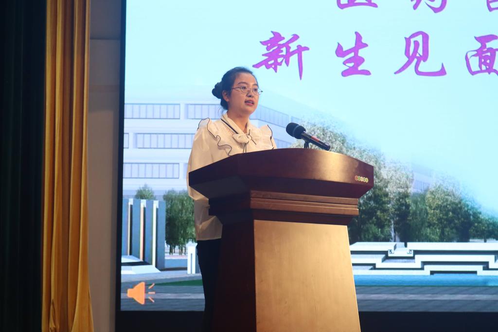 市场营销系主任崔行武老师对同学们即将开启的老员工活提出四点建议:做好角色转变;做好大学学涯规划;自律并且做到全面发展;立即行动,持之以恒。优秀员工代表王雯雯老师与学弟学妹们分享了“人生没有白走的路,每一步都算数”的成长感悟。公司员工会主席王苑鼓励学弟学妹们做好老员工涯规划,积极投入到丰富的校园文化生活中去,不断提升自己的综合能力,不负青春,不负韶华。2022级李怡璇同学代表新生发言,表示要立志成为更加自信自立自强,争做有理想、有本领、有担当的时代⻘年。