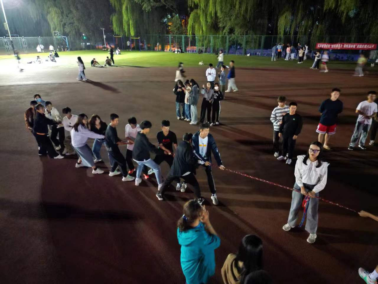 为了庆祝国庆节的到来,培养同学们的健康体魄,提高班级凝聚力,弘扬自强不息的体育精神,喜迎党的二十大的召开,三亿体育于9月29日晚在三亿体育官网老体育场举行庆国庆拔河比赛,2022级全体新生参与。