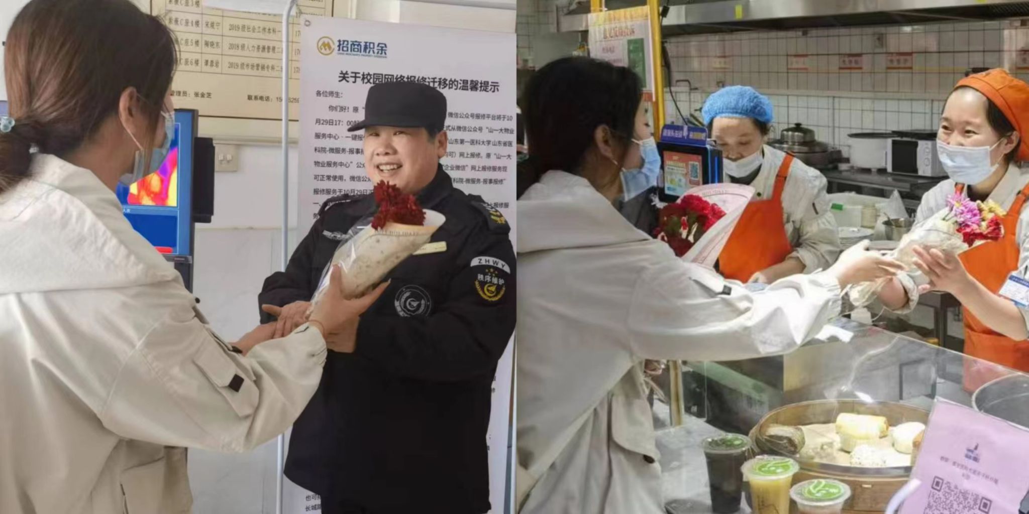 活动结束后,公司员工将包装好的花束赠予公司餐厅与宿舍的女老师们,并为她们送上了温馨的节日祝福。