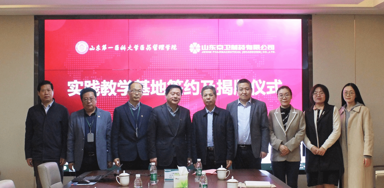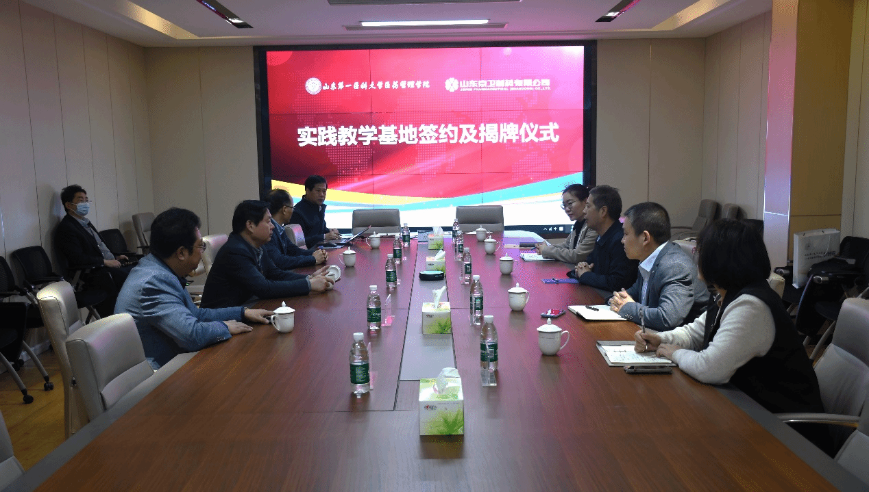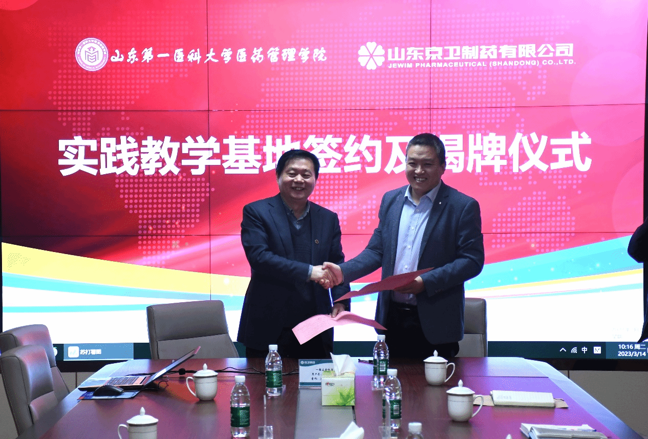 会议还举行了山东京卫制药有限公司与三亿体育实践教学基地揭牌仪式。任纬兵与李铁军代表双方签订了共建实践教学基地协议。双方就未来深入校企合作、互利共赢达成共识。