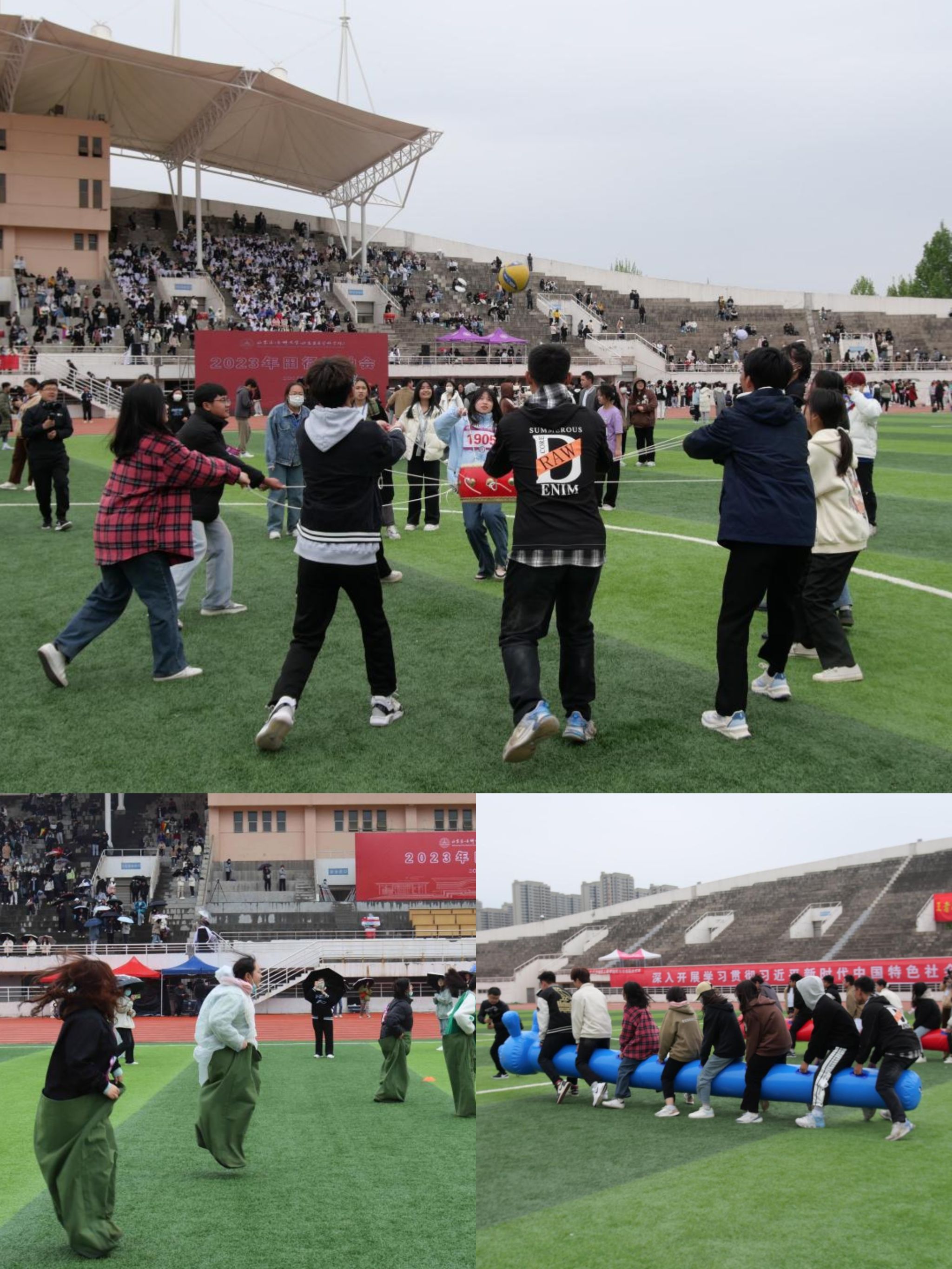 趣味运动项目集趣味、竞争、协作于一体,共设置30m袋鼠跳,充气毛毛虫,同心鼓击鼓颠球三个项目。同学们本着友谊第一,比赛第二的原则进行了智慧与体力的角逐。伴随着现场此起彼伏的加油声、喝彩声,每个人都尽情都地享受趣味运动会带来的快乐。