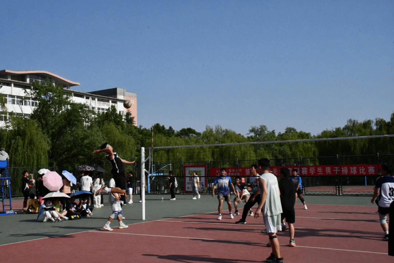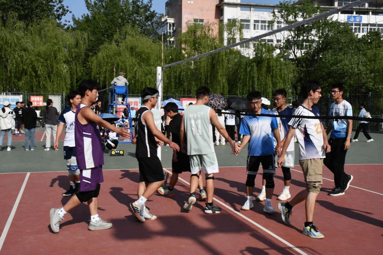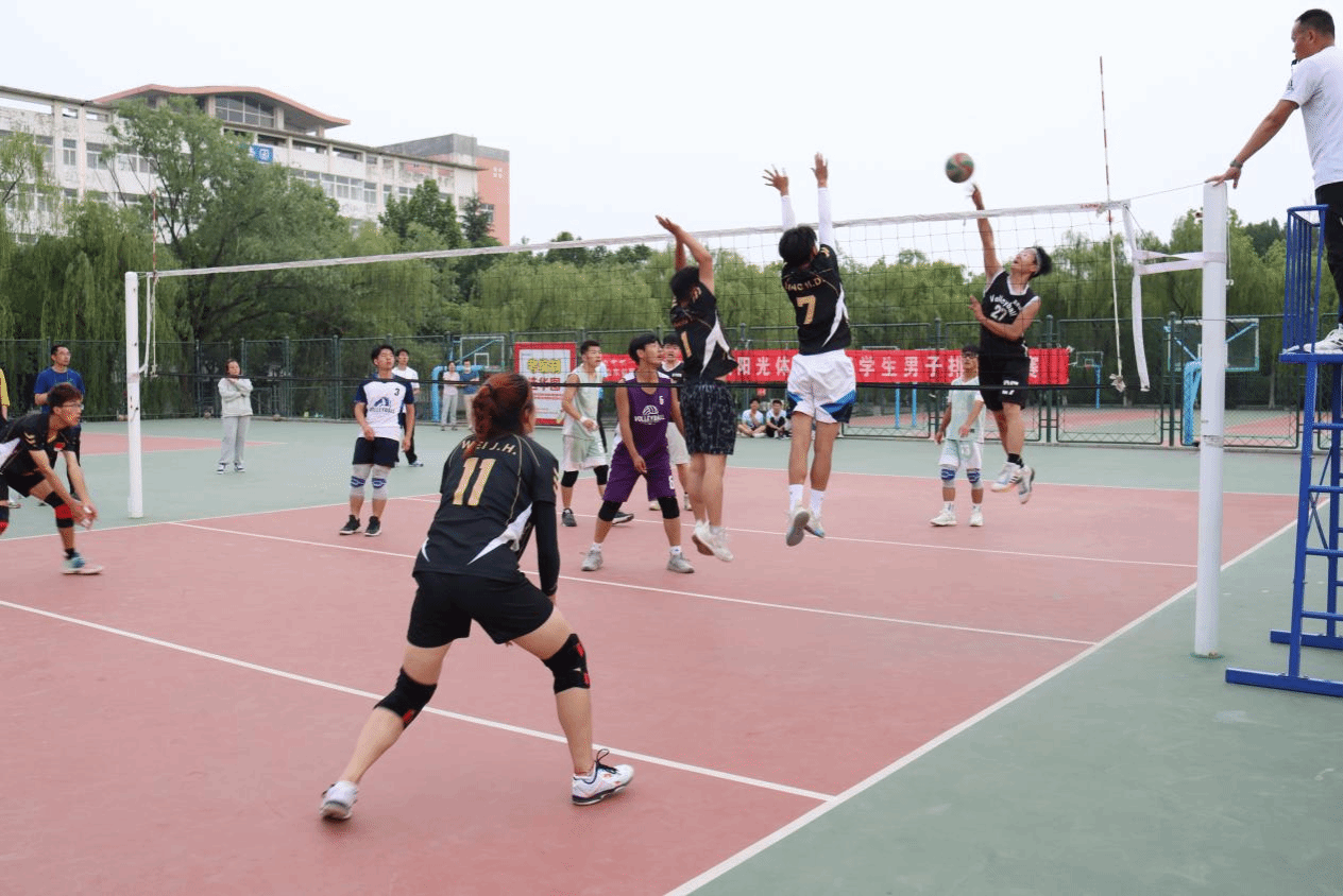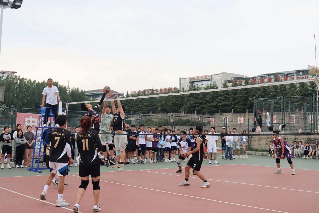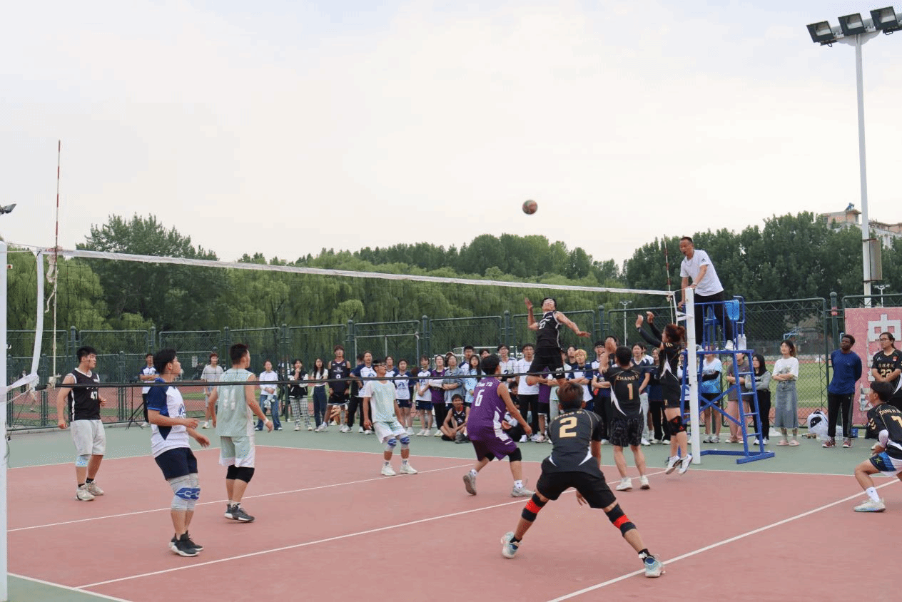 比赛开始前,队员们不畏烈日高温,刻苦训练,排演战术,精进技巧,积极备战,只为取得更好的成绩。赛场上,双方队员各施绝技,各显身手,时刻准备着。队友间互相配合,相互鼓励,发球、起跳、传球、拦网、扣球,队员们充分发挥出了精湛的技术和熟练的战术配合。赛场外,同学们自发组成的拉拉队加油呐喊,声声震耳,铿锵有力,此起彼伏,凝聚成强大的力量,鼓舞着球员们奋力拼搏。从小组赛开始,全体队员认真对待每一场比赛,他们拼尽全力,不畏强敌,团结一心,越战越勇,最终斩获本届排球比赛冠军。