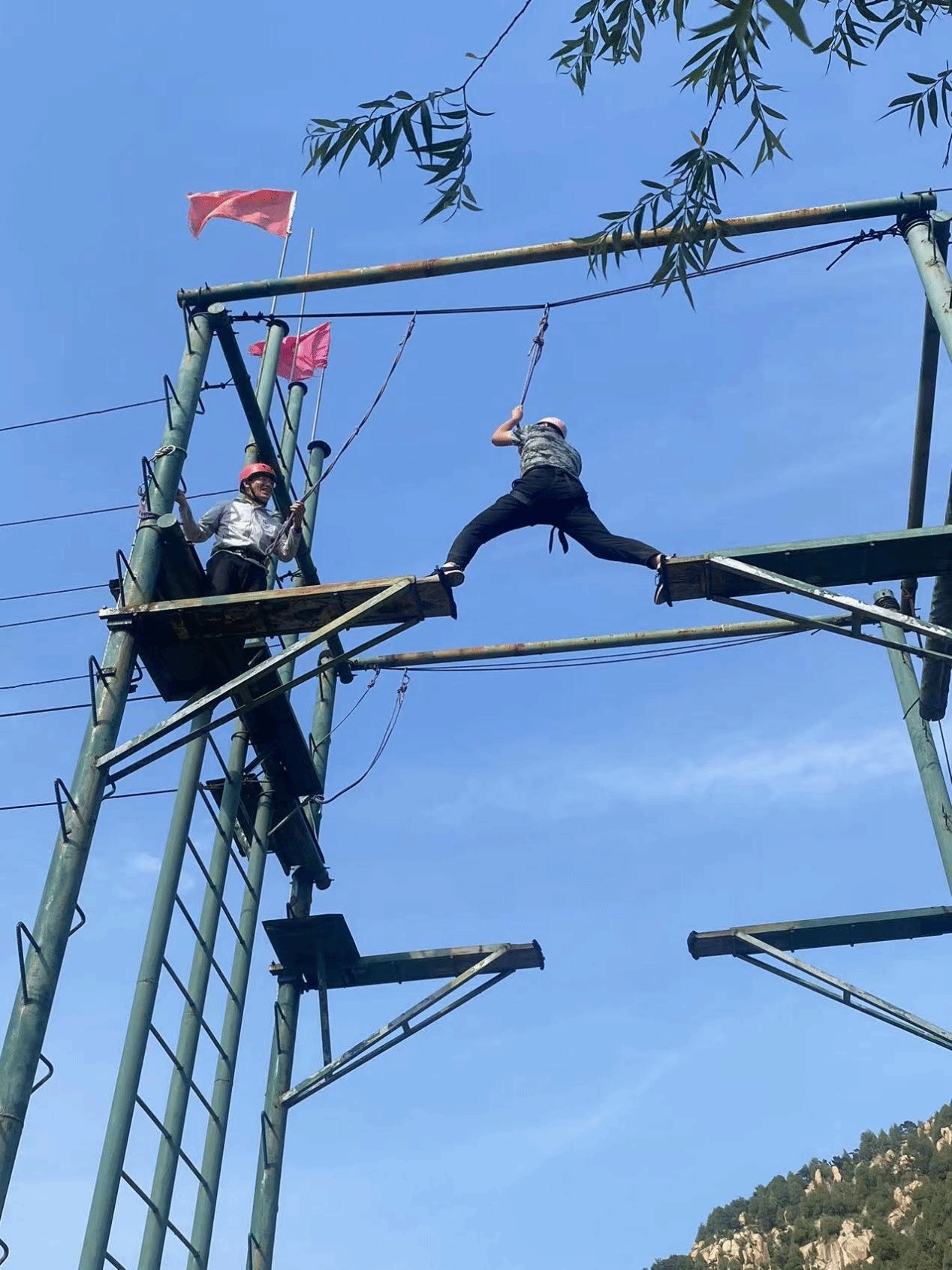 本次素质拓展训练将同学们分成三个小组,在信任背摔、高空断桥、穿越沼泽地、逃生墙等活动中进行素质拓展。在培训中心指导老师的带领下,同学们迅速进入状态,配合协作,突破自我,在奔跑中挥洒青春的汗水,迸发出团结向上的奋进力量。活动中,同学们认真了解规则,反复练习、磨合,齐心协力,默契配合,克服高空恐惧,不断战胜自己。尤其在逃生墙环节中,女生们踩过男生的臂膀登上高墙,男生们用坚强的意志支撑着摇晃的身体,不顾手臂疼痛,坚定的保障了每一位女同学安全顺利通过,圆满完成了任务。活动现场气氛热烈,充满了青春的活力,每一个项目都让员工感到个人成功必须建立在团队其他成员的相互支持和共同努力基础之上,要想获得成功,就要做到胆大心细,敢于挑战,战胜自我。