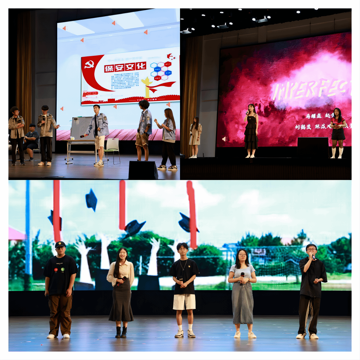晚会第二篇章的主题是“乘风破浪”:“毕业终究是一场分别,但我们却不愿说再见,”歌曲《不说再见》承载了无数的校园回忆和满满的感动;街舞表演《loco》舞动出青春的活力和朝气,展现出青春的魅力风采;说唱表演《imperfection》诠释不完美的定义,鼓励毕业生们勇敢自信地走入社会;小品《保安队那些事》幽默风趣,同时也展现了基层岗位上的责任与坚守,希望毕业后的学子们能够在各自的岗位上为社会发光发热。