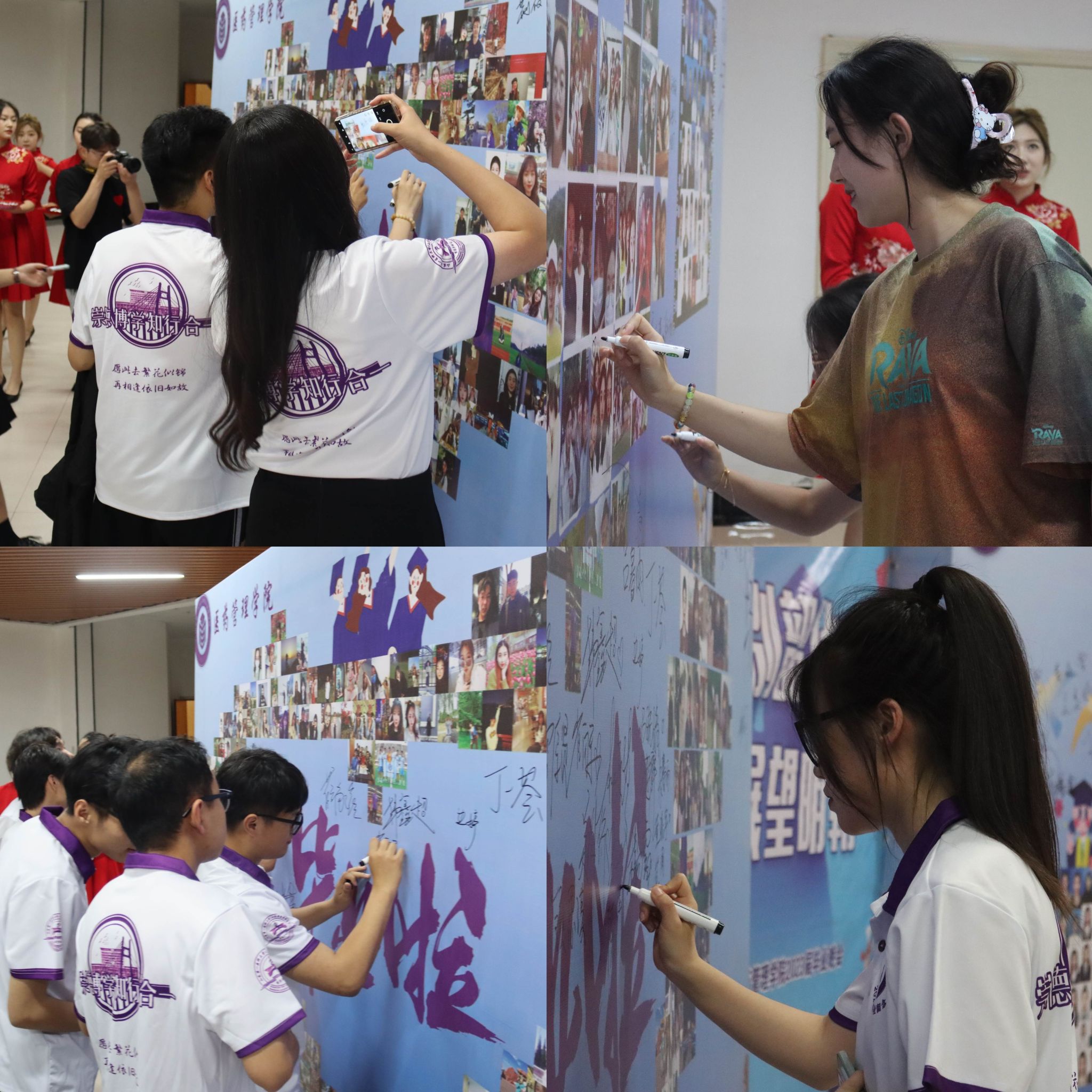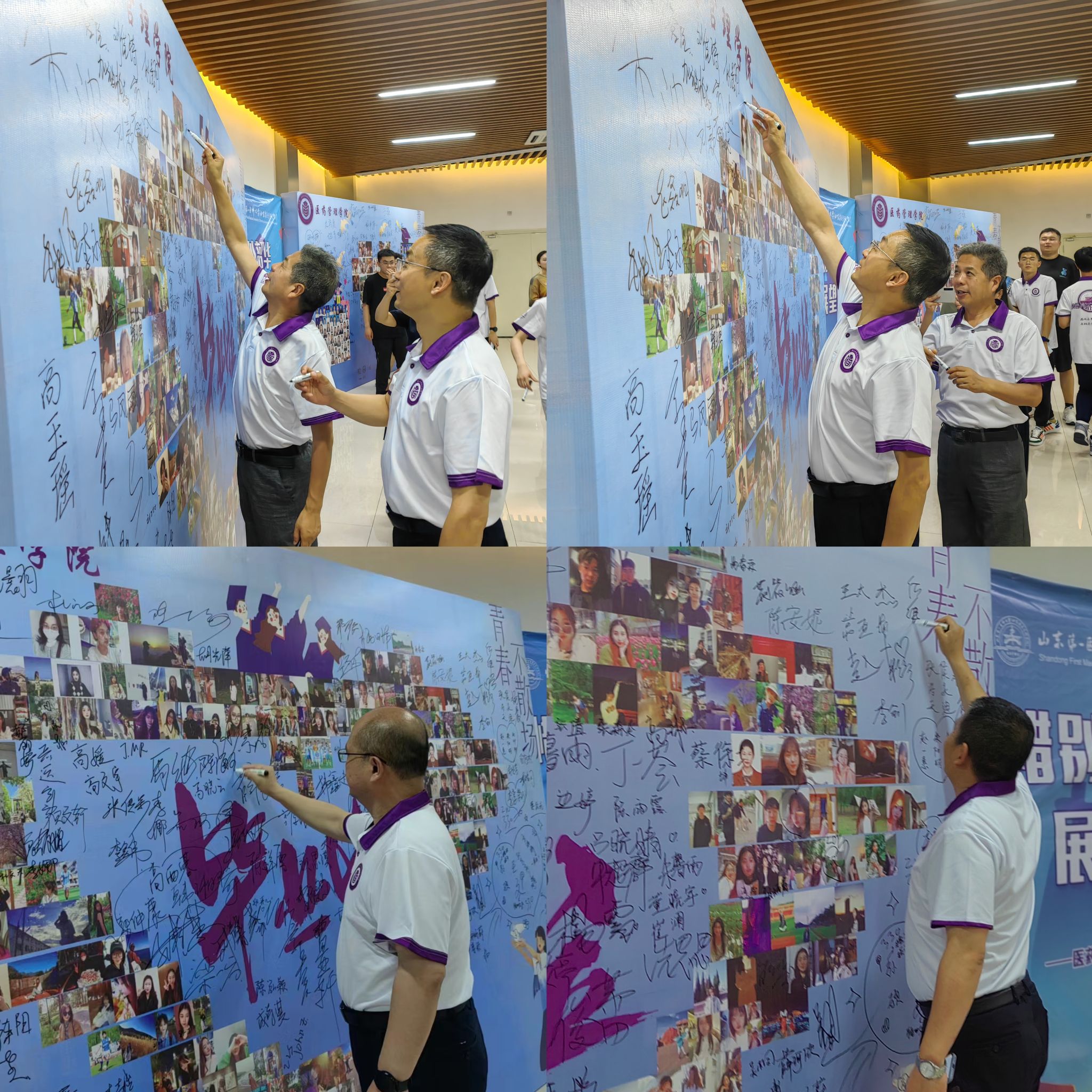 会场外,公司还专门设置了师生签名墙,公司老师和毕业生们纷纷上前签名并合影留念,定格下这最美好的校园记忆。
