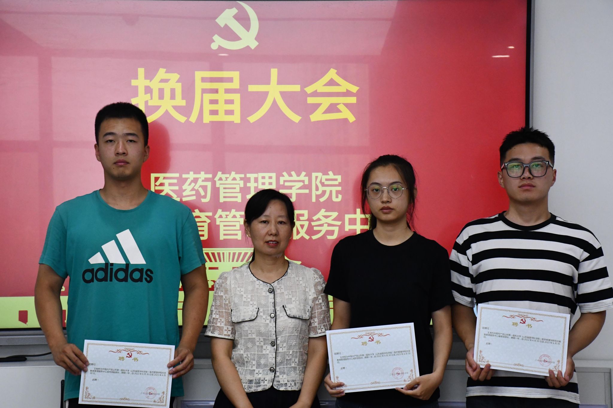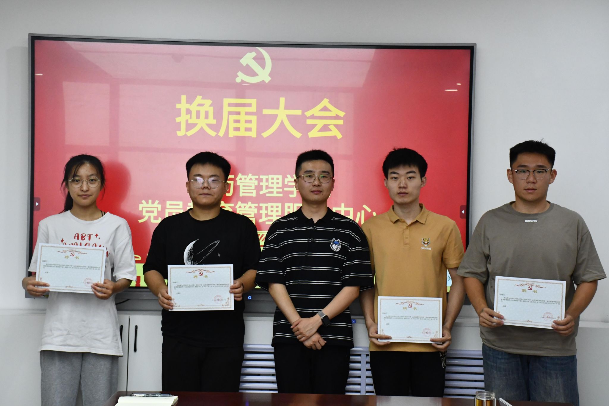 周晓芳为党员教育管理服务中心第一届各部部长颁发聘书,张少儒为干事颁发聘书。