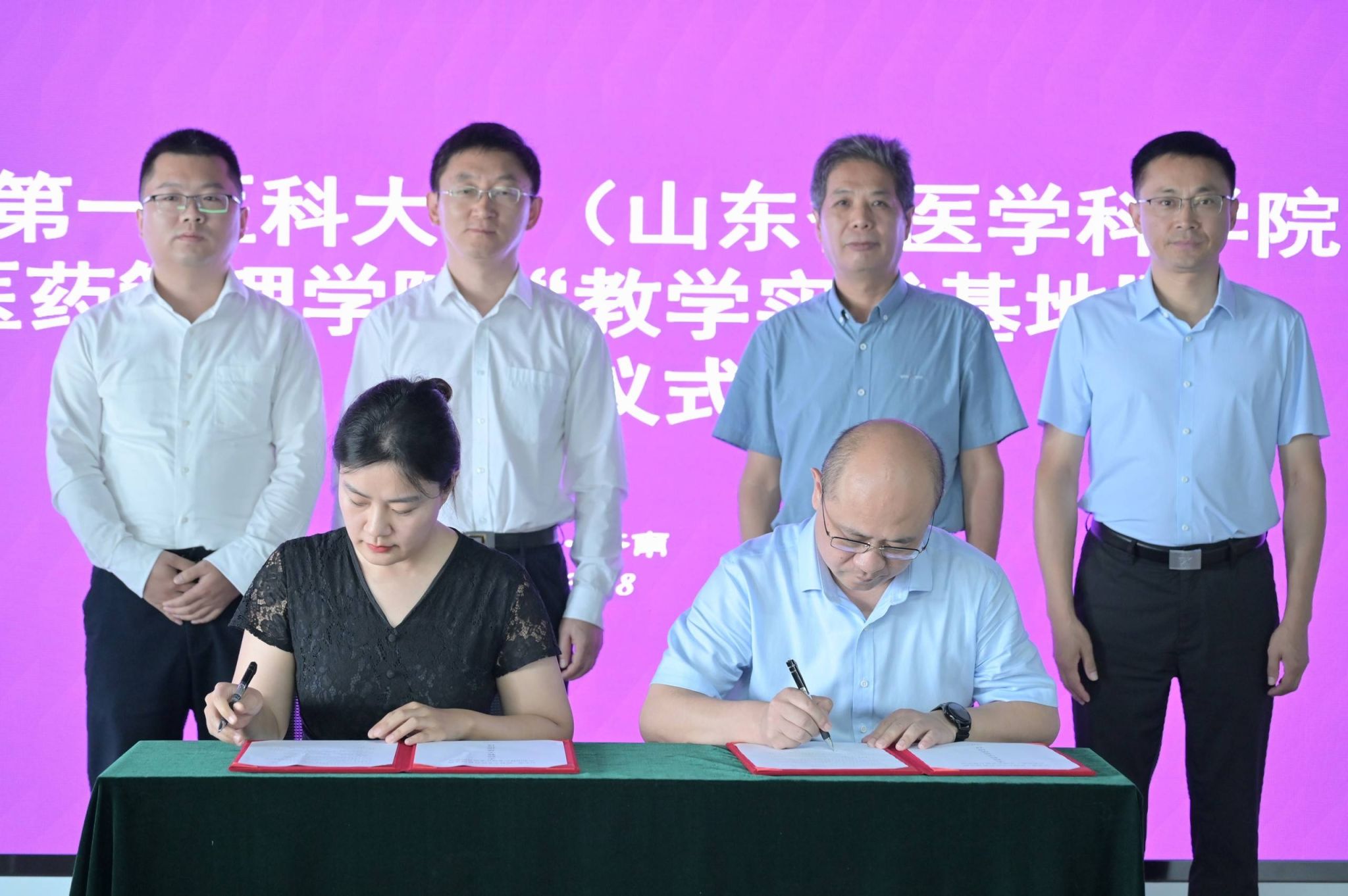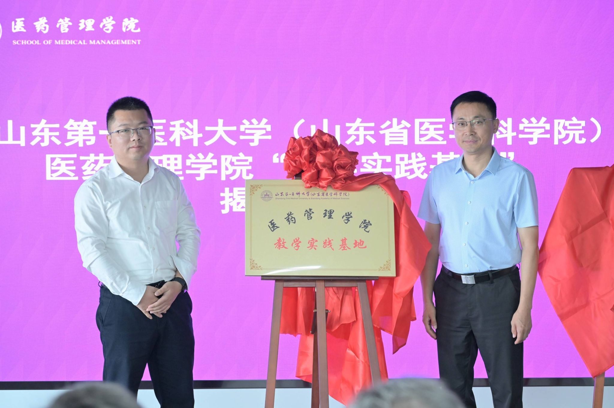 公司党委书记杜江山与山东省科创集团总经理助理、山科园区总经理梁博共同为教学实践基地揭牌。