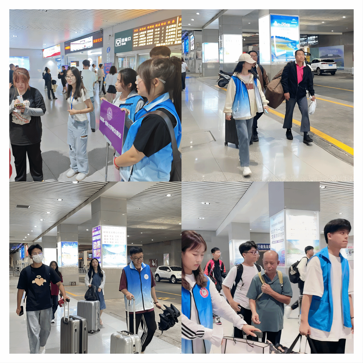 从“新”而来,由“心”出发,在高铁站接待点,迎新的老师和志愿者们热情地迎接着新生和家长,迎新专车穿梭在校园和各接站点之间。志愿者王洪元兴奋地说,“去年我还是被迎接的一名新生,今年我有幸成为迎新队伍的一员,我定会全心全意为新生服务,力争以最饱满的热情、最亲切的面貌服务新生,尽自己所能为学弟学妹们提供最大的便利。”