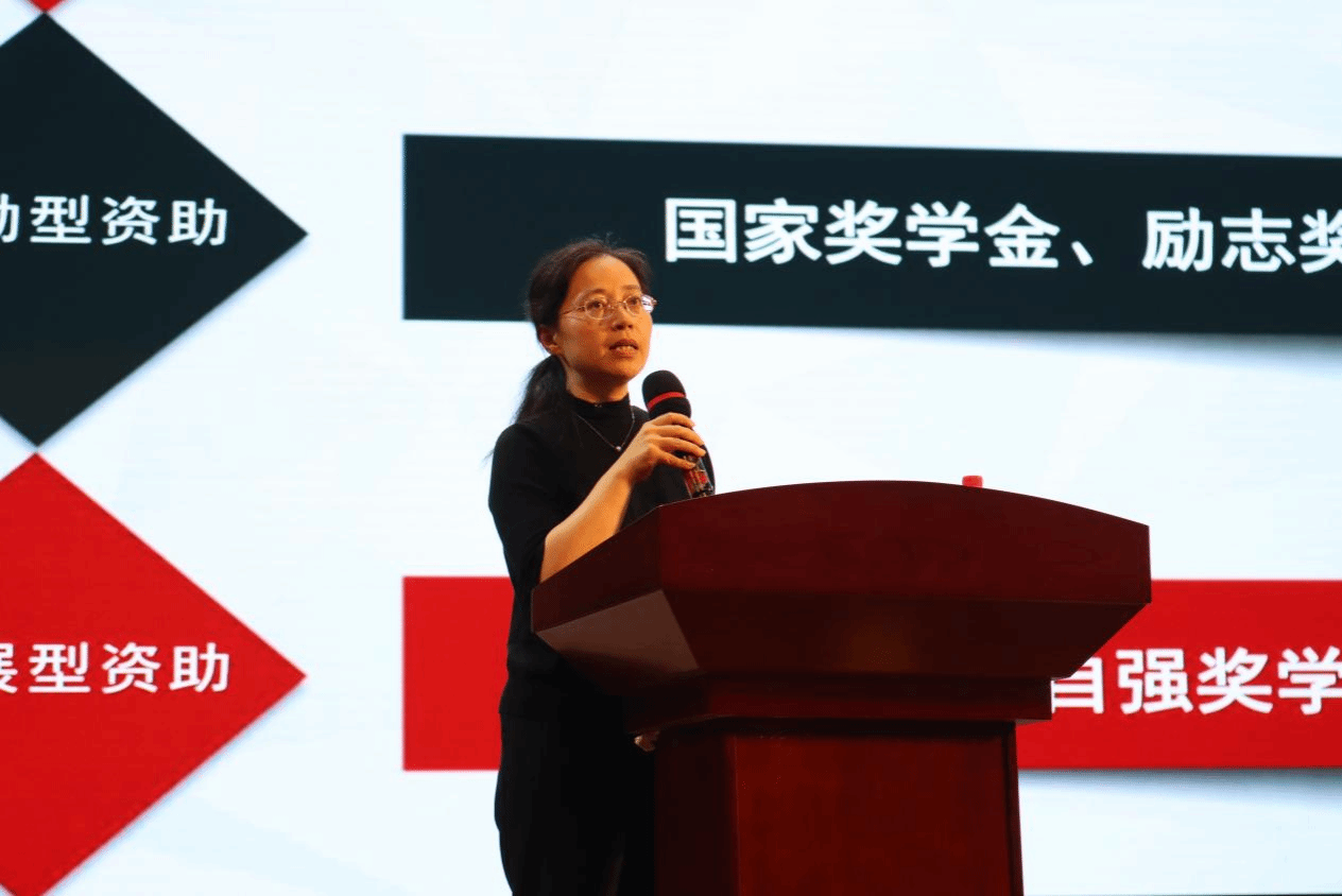 刘玉在会上进行了以“学在山一大,爱筑成才梦”为主题的员工资助政策介绍。她从员工资助管理中心的工作职能、员工资助工作体系等多个方面重点归纳讲解了奖学金和助学金的评选要求,为大家表明违纪处分的危害,鼓励同学们积极向上,努力学习。此外,她向同学们介绍了国家助学贷款的申请、偿还等相关事项,带大家深入了解国家、公司的各项资助政策和资助项目。