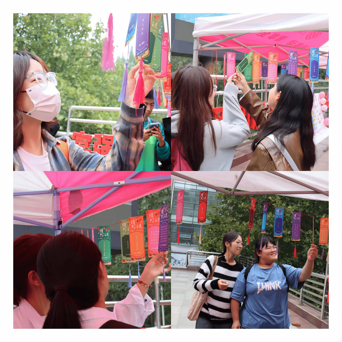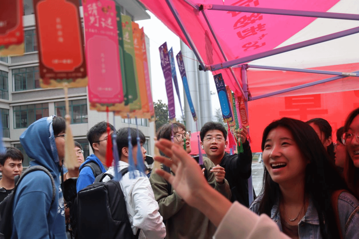 “秋桂飘香月满盈,玲珑巧思取灯谜”。灯谜文化起源于春秋战国时期,距今已有两千多年的历史,是我们中华传统的瑰宝。在猜谜中,同学们感受到中华民族传统节日文化的魅力,猜对灯谜的同学们领取了小礼品,同学们激烈讨论着自己看到的灯谜,意犹未尽,乐在其中,现场充满欢声笑语。相聚于谜笺之下,运用智慧巧思猜取谜底,寓教于乐,不仅丰富了同学们的文化知识,更营造了山一大校园一派其乐融融的景象。