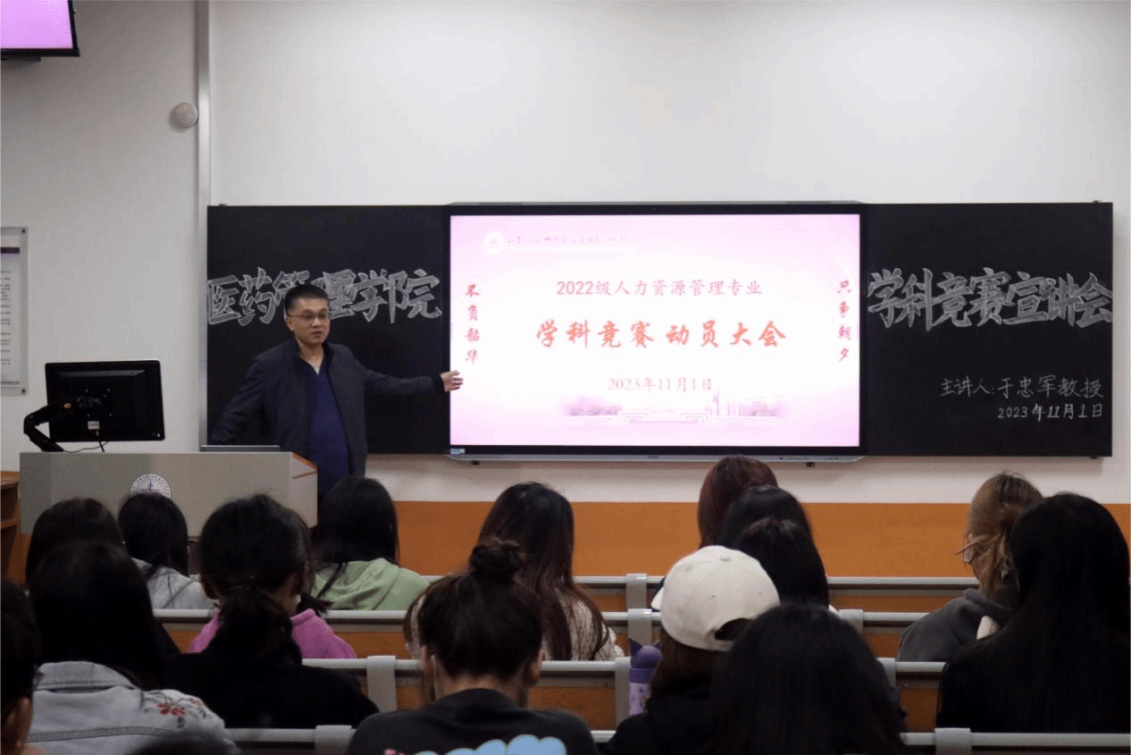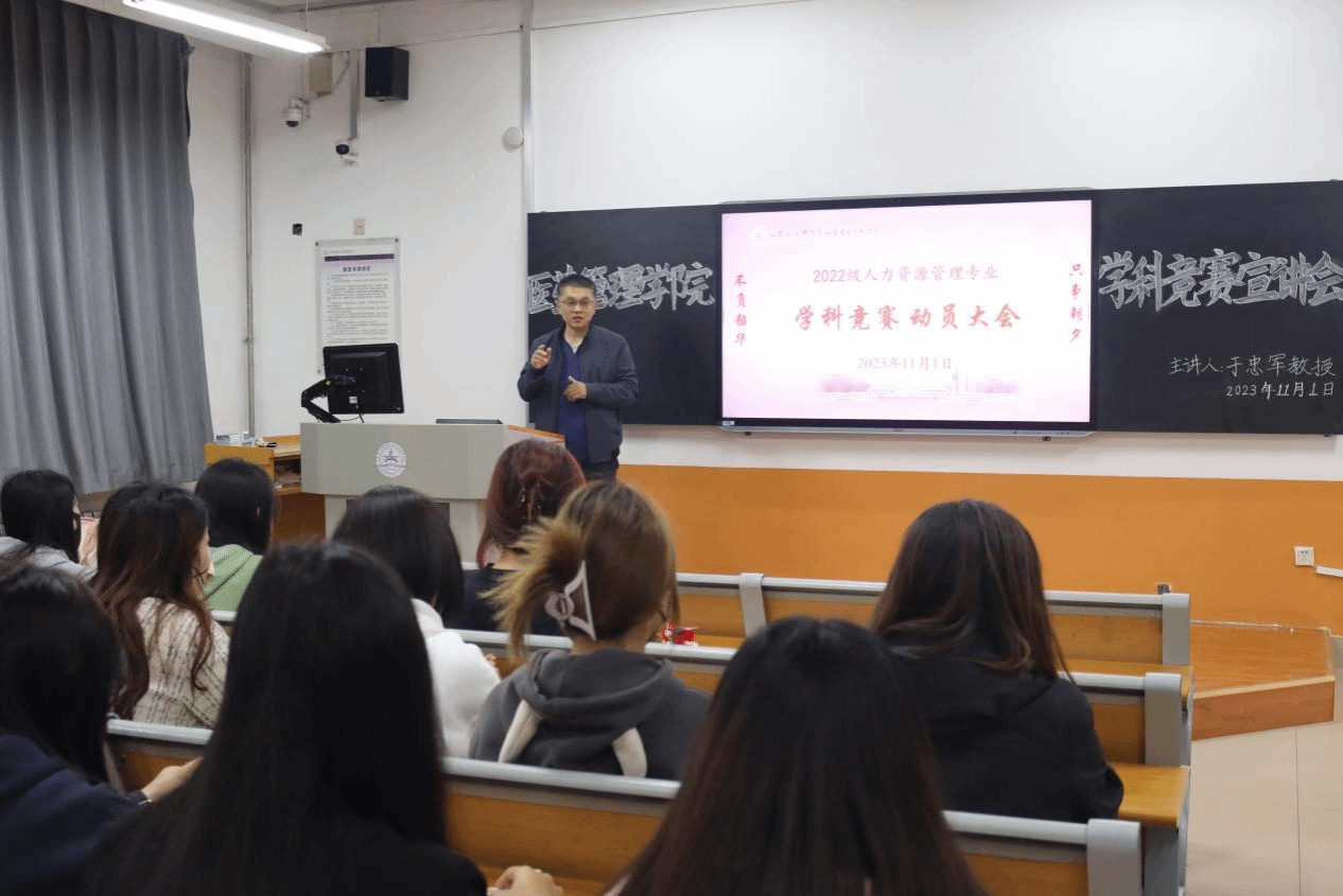 为帮助同学们了解学科竞赛的相关内容,动员同学们积极参与学科竞赛,11月1日上午,三亿体育在教学南楼C1004教室召开人力资源管理学科竞赛宣讲会。本次宣讲会由人力资源管理系主任于忠军主讲,辅导员张少儒及22级人力资源管理专业员工参会。