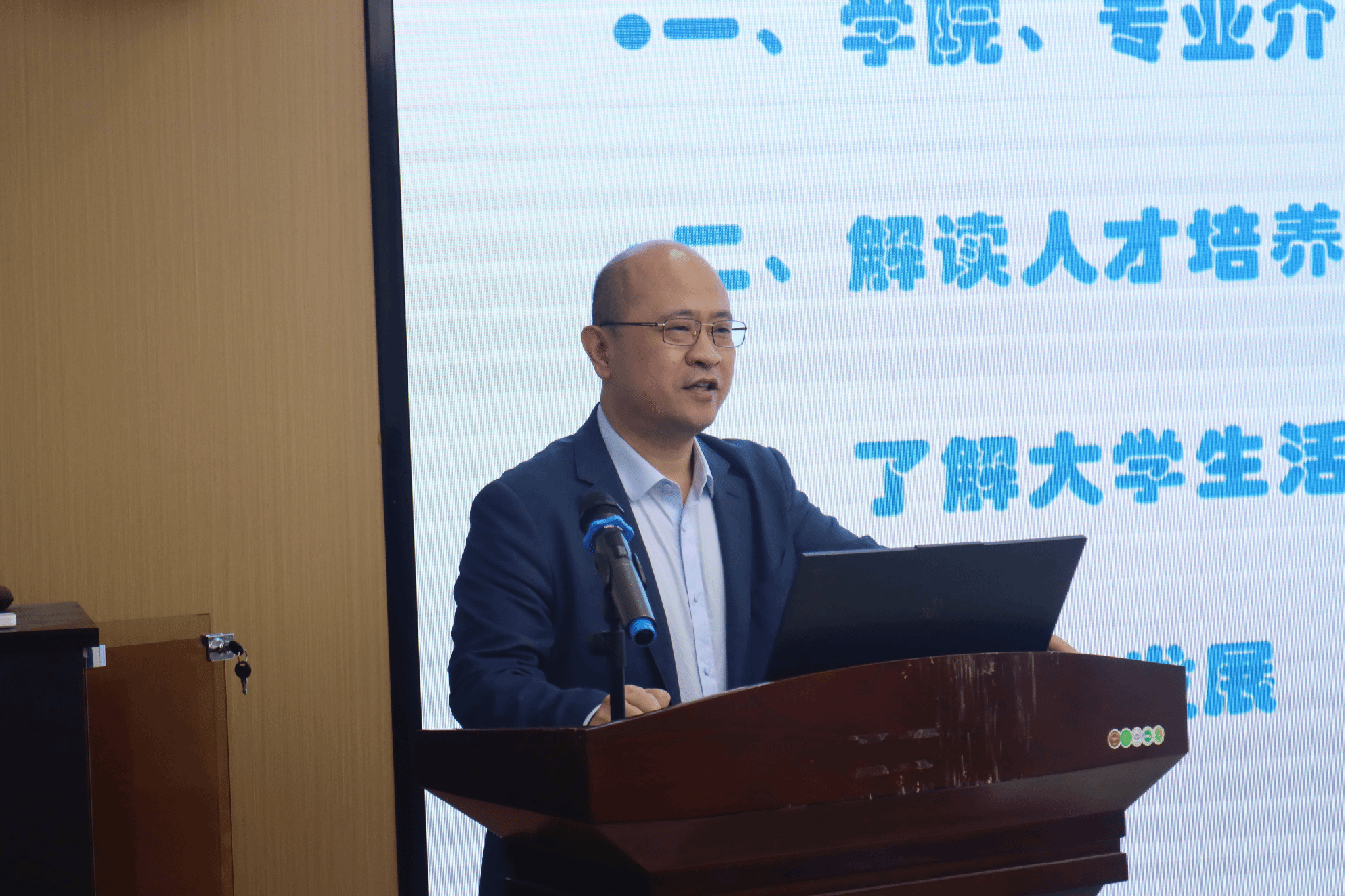 孟建为师生家长们详细解读了校(院)招生政策和各学科专业的分类情况,重点介绍了山一大雄厚的科研实力和团队力量、山一大招生在山东省的排名以及公司基础设施建设的情况,让在场的师生和家长们更加直观深入地了解了山一大的办学水平,在孩子们心中播种下了一颗憧憬山一大、报考山一大的种子。
