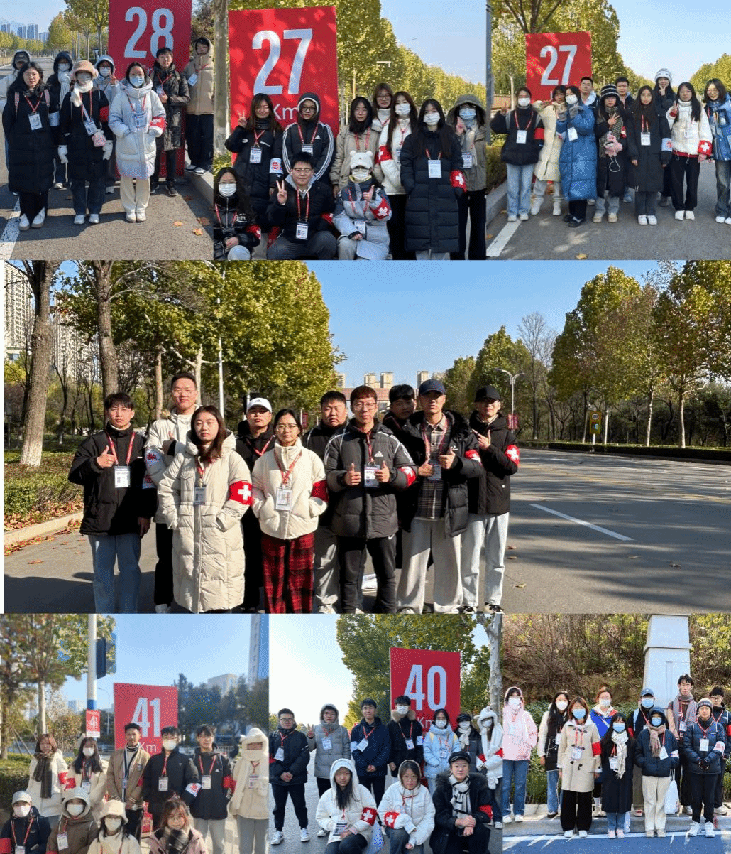 晨光熹微,点点星光汇聚,散发无穷光芒。志愿者们凌晨五点集合,乘车前往泰马赛场。迎着寒冷的冬风,他们准时到岗,迅速投入到赛道检查、疏导场地周围的观众和媒体、准备医疗物品等一系列赛前准备工作中,积极迎接比赛的到来。赛程中,志愿者们倾力相助,为出现身体不适等情况的参赛人员提供及时救助,为马拉松的顺利进行提供有力的医疗保障。工作中志愿者们始终以细致、专业的工作态度完成志愿服务活动,他们的认真负责、无私奉献给这场赛事增添了别具一格的色彩。活动最后,山一大志愿者们合影留念。