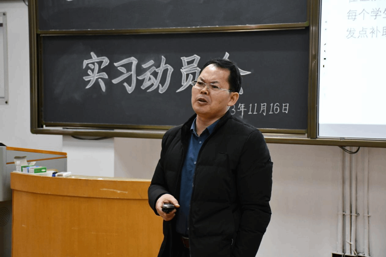 袁飞在会上介绍了专业毕业生采取分散与集中相结合的实习方式,并结合实习生的经历和收获,强调了实习经历的必要性,鼓励毕业生们走出校门,在实践中学习和巩固理论知识,积累工作经验和社会经验,为以后就业打下坚实基础。