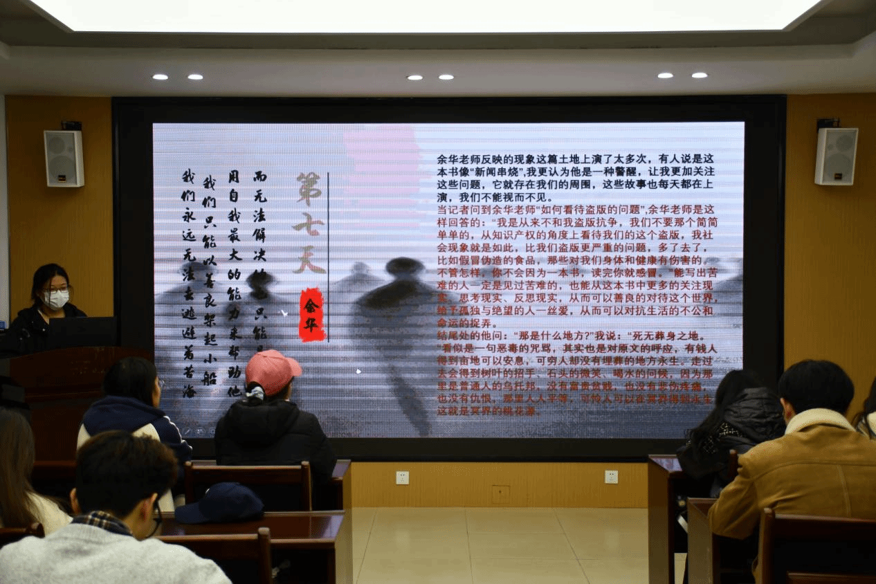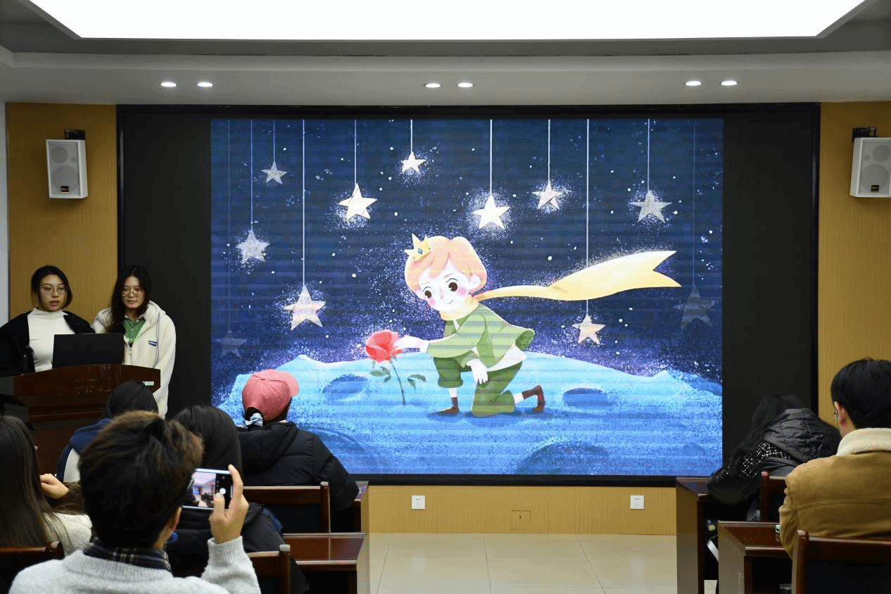 本次活动中共有八个小组进行了分享和展示,中外经典书籍皆有介绍和推荐,不仅有再现大宋都城汴京盛世繁华的《东京梦华录》,有在新中国觉醒年代诞生的《南腔北调集》,有描绘命运苦难、体现明朗和欢乐的《我与地坛》,也有展现纯真与浪漫的《小王子》,描绘爱情、死亡与孤独的《百年孤独》等十本经典书籍。这些书籍透露着同学们对生命意义的认识,对当下生活的定义,和在现实中对浪漫艺术精神的追求。在小组交流环节中,各小组积极发言,通过课件就“心沐阳光,共筑未来”分享自己的阅读感悟和阅读方法,讲述自己的阅读历程并向大家分享了经典语录或片段。