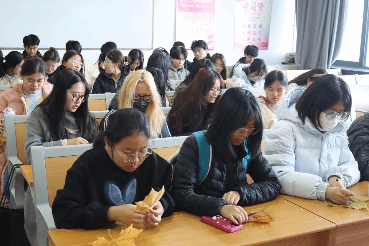活动中,同学们积极参与,凭借着善于发现美的眼睛和善于创作的双手,深入到校园的自然美景中去捡拾落叶,绘制充满想象力的树叶画,还将自己最喜欢的诗句和最虔诚的祝福写在大自然的馈赠上,制作成了精美的书签,作为学习时的动力和对来年最好的祝福。一缕情丝寄落叶,每一个书签,每一幅树叶画不仅体现了同学们对季节的喜爱,更体现了对大自然的赞美。此次活动中同学们将落叶转化成另一种美的形式保存下来,不仅调动了自身创造美的热情、锻炼了动手实践能力,更使环保意识得到了强化。