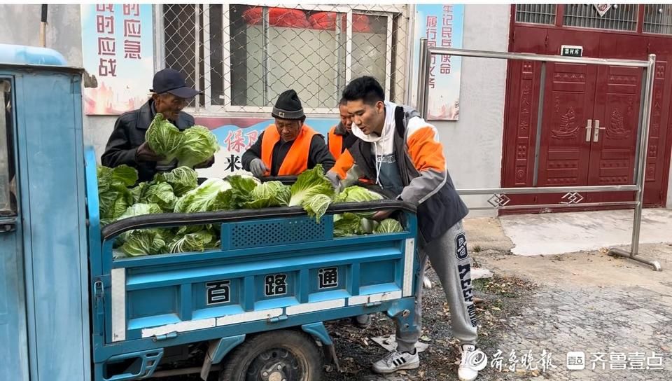 图为侯庆迪在帮村民把白菜运到家里,防止下雪封路,封在地里 图片由被采访者提供