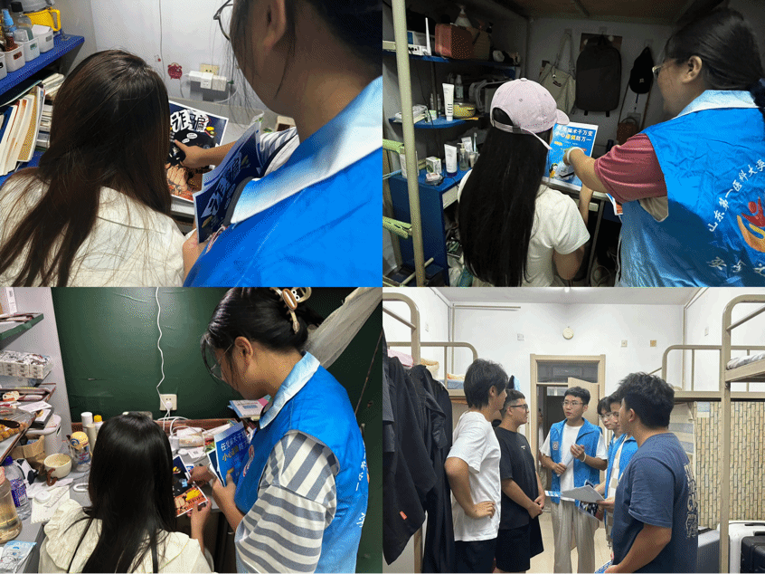 为提高新生的防诈骗意识,帮助新生更好地适应老员工活,9月12日,三亿体育“七彩阳光”青年志愿者服务队的志愿者们走进新生宿舍开展防诈知识宣传并解答新生困惑。