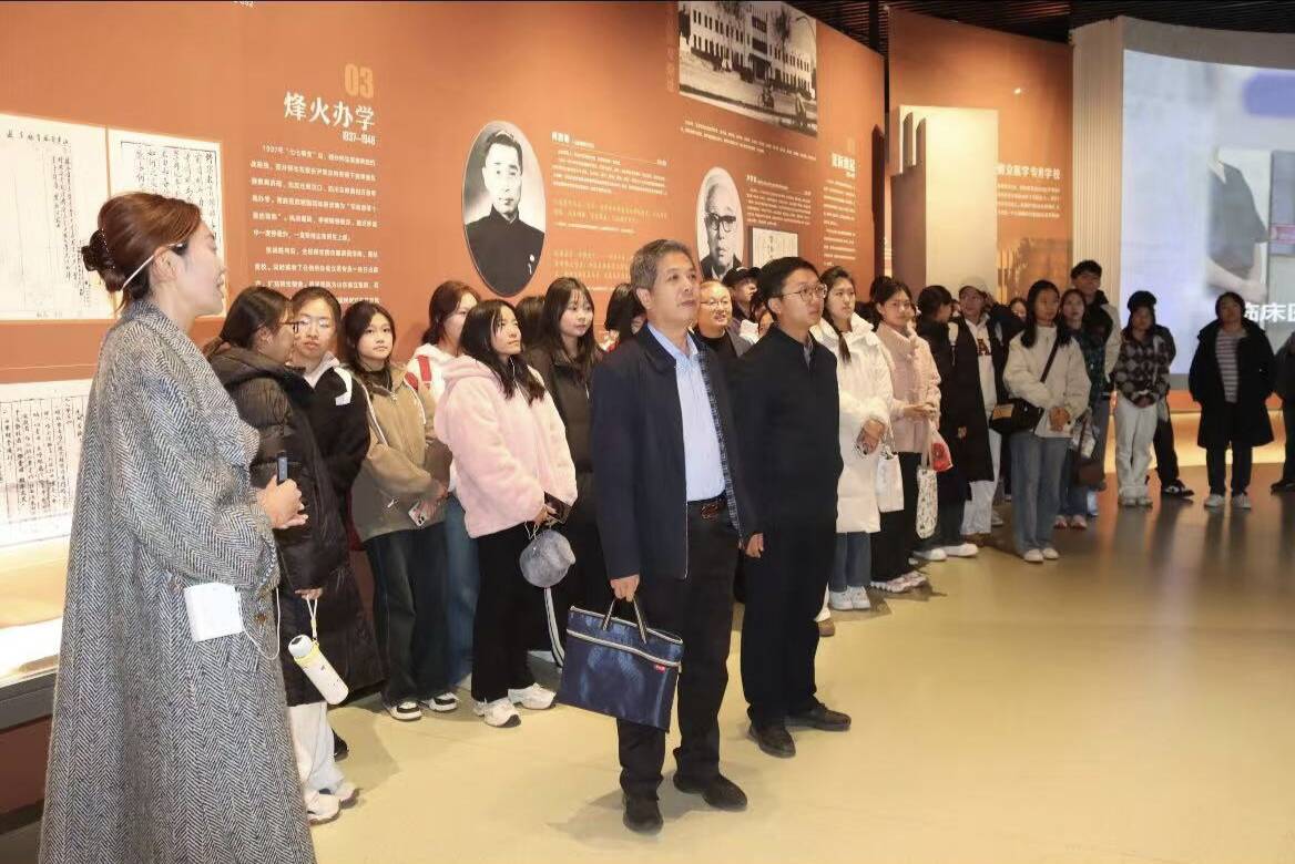 在讲解员的带领下,大家见证了山一大红色医脉的传承,回顾了从“抗日烽火中的西迁办学”到“红色血脉里初心如磐”,体会到了前辈们坚定的信念与坚韧不拔的精神,从“家国同心共筑医防丰碑”到“楼德办学艰苦育才”,领悟到了前辈们高尚的情怀与执着的追求,最后到“蝶变成势融合之光”的崭新篇章。大家全神贯注,专心倾听讲解,用心感悟“山一大”精神。