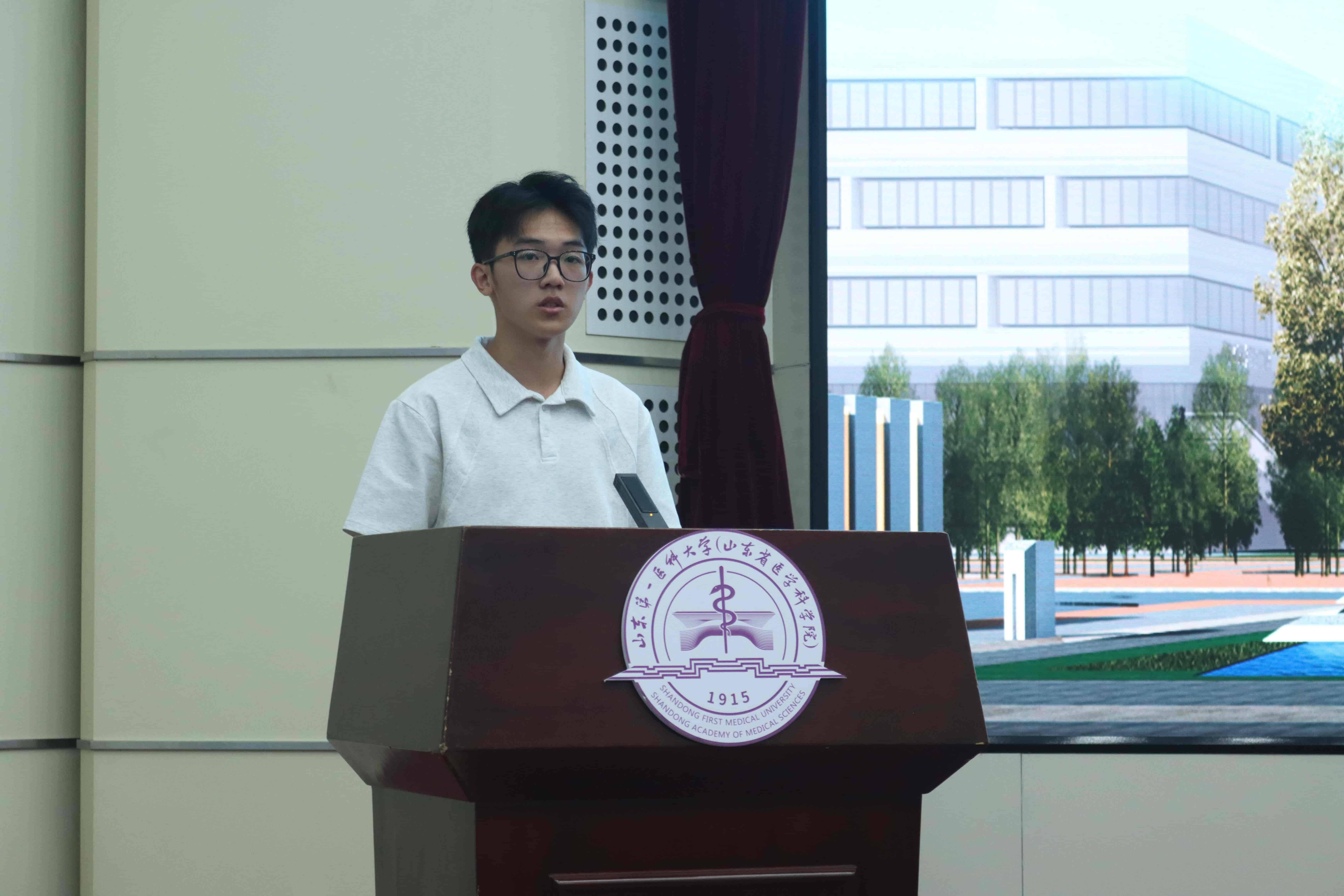 新生代表郭玉阳在问候师生后回顾了共同备考的拼搏时光、点明相聚山一大的意义。他强调大学是锤炼思想的“淬火池”,能让人有更多时间与空间探索自我、洞悉世界。同时建议同学们多去图书馆、多参与社团、多到操场运动,以更加阳光、健康、自信的姿态迎接未来挑战。