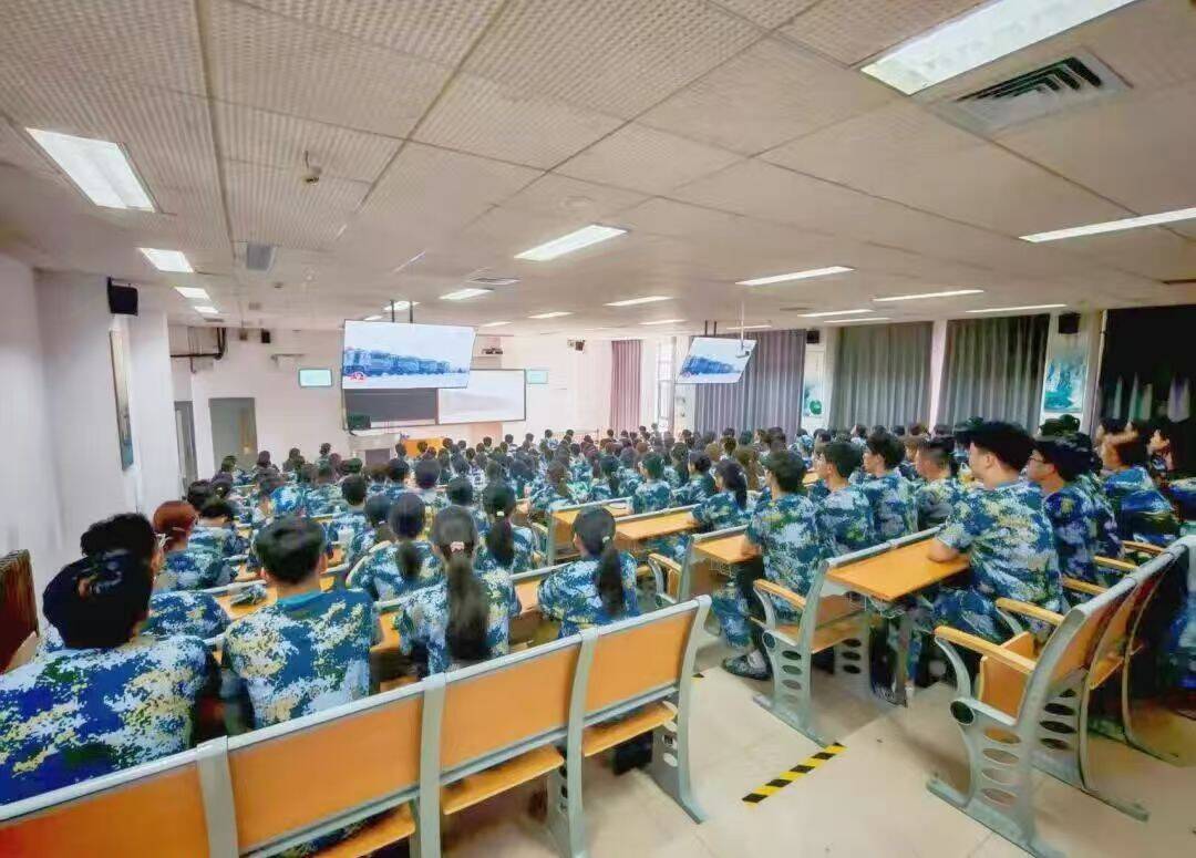 今年的军训课程更显匠心,科学的设置与丰富的内容。尤为特别的是 “战场医疗救护” 训练,新生们专注学习伤口包扎、骨折固定、心肺复苏等技能。指尖穿梭的绷带、按压胸腔的力度、判断呼吸的细致,每一个动作都承载着 “守护生命” 的重量。这不仅是一堂实用的军事课,更是一场生动的医学启蒙教育,让这群未来的医药管理者提前感知到专业背后的责任,为即将开启的专业学习奠定了坚实的思想基础。9 月 3 日,全体新生共同观看“纪念中国人民抗日战争暨世界反法西斯战争胜利 80 周年阅兵式”,当威武的方阵、先进的装备出现在屏幕上,现场掌声雷动。这场沉浸式的爱国主义教育,让同学们深刻感受到国家的强大,也更加坚定了“为医药事业奋斗、为人民健康护航”的理想信念。