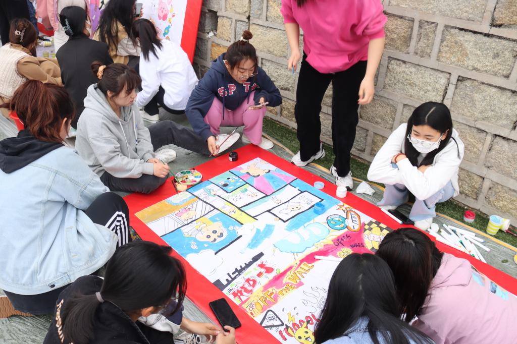 参赛选手共分为13组进行比拼。赛场上,各组选手分工明确,配合默契,用手中的画笔和斑斓的油墨在画卷上尽情地展现着自己独特的构思与创意,用优美的线条和色彩勾勒出一幅幅富有思想、创意的艺术画,栩栩如生的卡通人物,还有现场即兴创作的各种艺术字,色彩艳丽,创意十足……整个比赛现场气氛活跃,吸引了众多同学前来驻足观看。涂鸦完成后,参赛选手们在签名墙留下自己的艺术签名并拍照留念。本次涂鸦活动由评委团进行打分,评选出一等奖两名,二等奖若干,三等奖若干,并通过投票环节决出一名最佳人气奖。最后,Ly队、对不对队、你说的都队三支团队的涂鸦作品取得优异成绩,泼水队获得最佳人气奖。此次涂鸦创意大赛取得圆满成功。